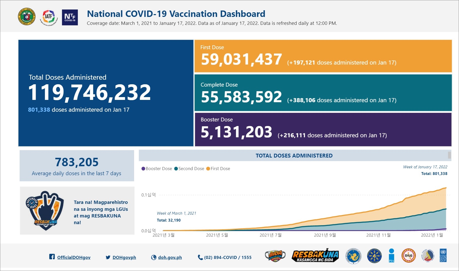필리핀 코로나19 백신 예방접종 현황 (2022년 1월 17일 현재)