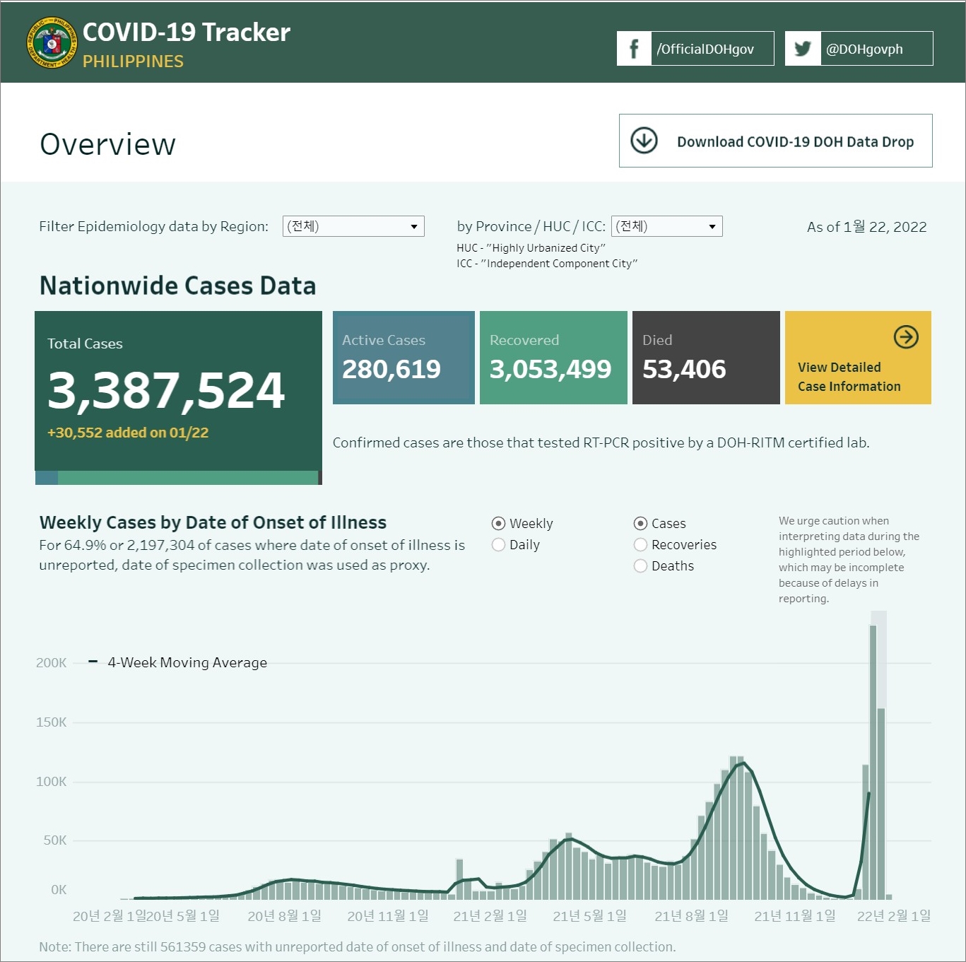 필리핀 코로나19 발생 현황 (2022년 1월 22일 현재)