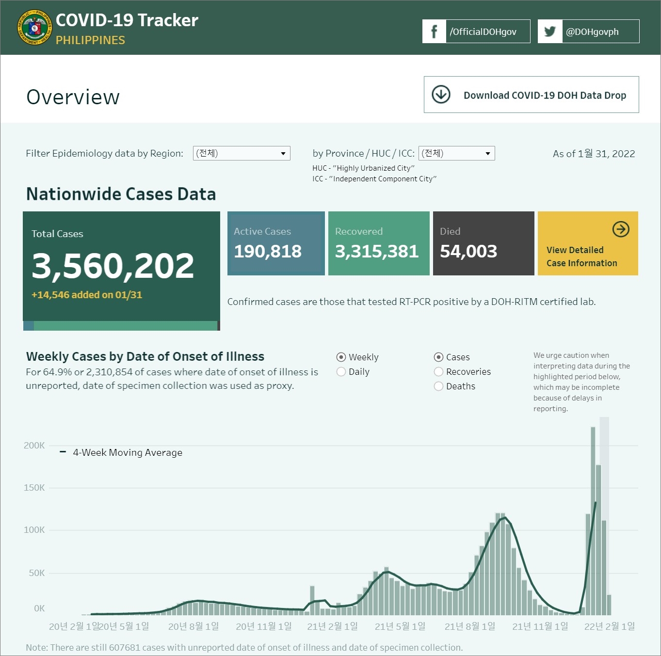 필리핀 코로나19 발생 현황 (2022년 1월 31일 현재)