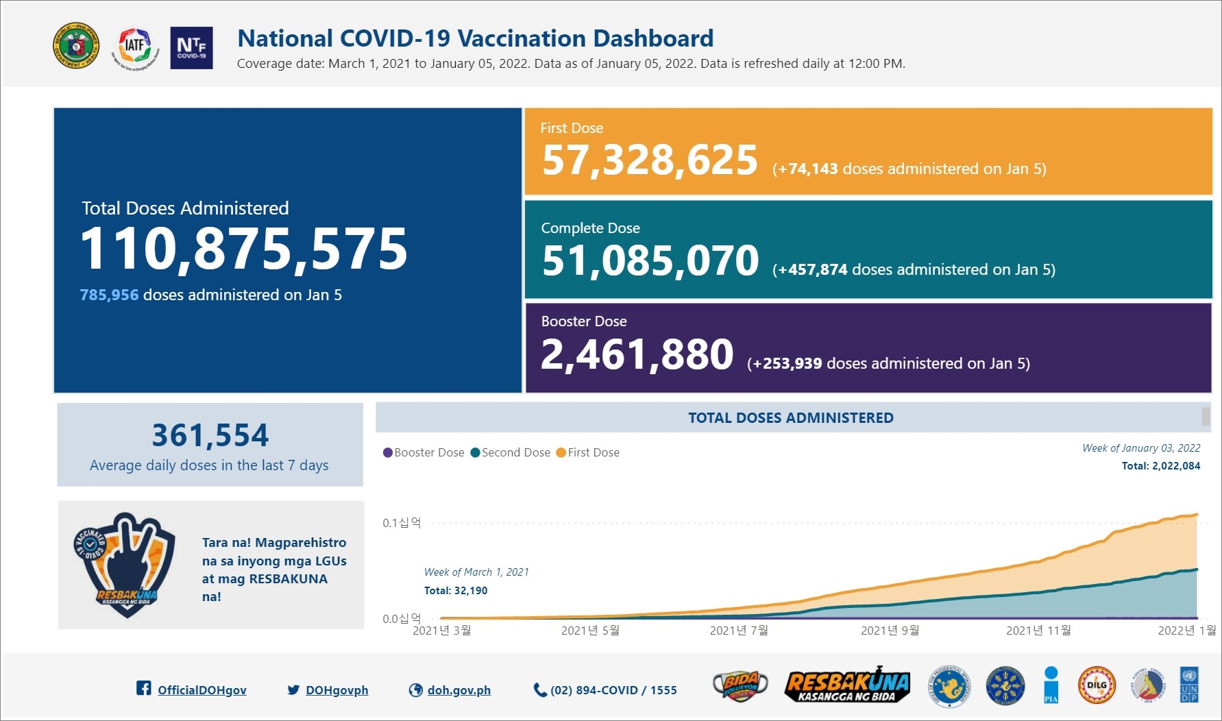 필리핀 코로나19 백신 예방접종 현황 (2022년 1월 5일 현재)