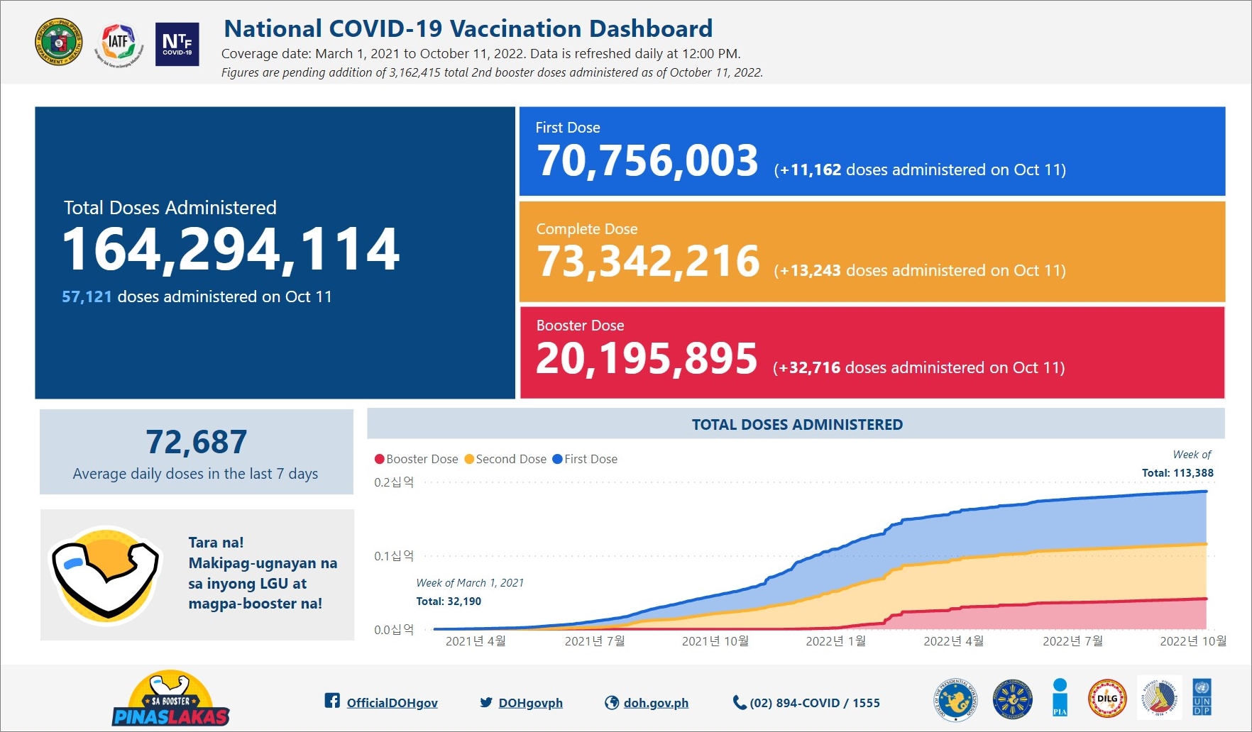 필리핀 코로나19 백신 예방접종 현황 (2022년 10월 11일 현재)