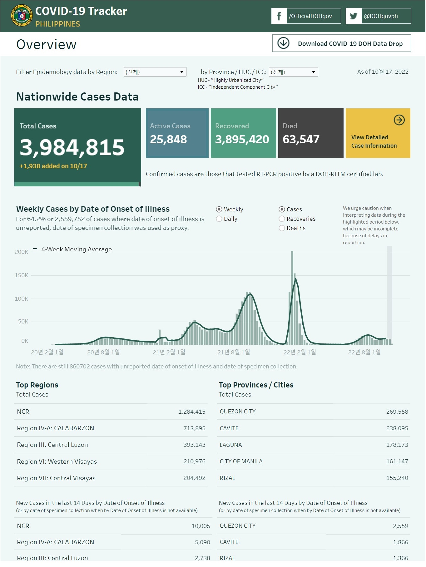 · 필리핀 보건부(DOH. Department of Health) : COVID-19 TRACKER