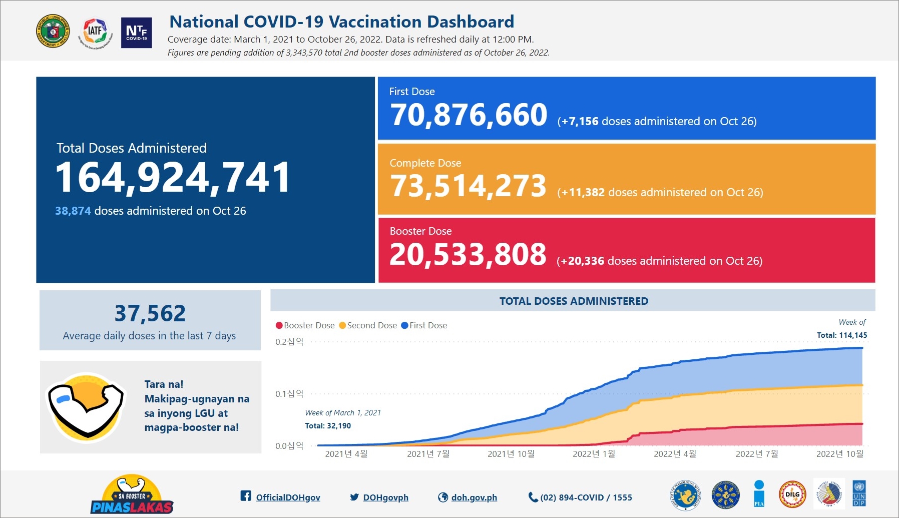 필리핀 코로나19 백신 예방접종 현황 (2022년 10월 26일 현재)