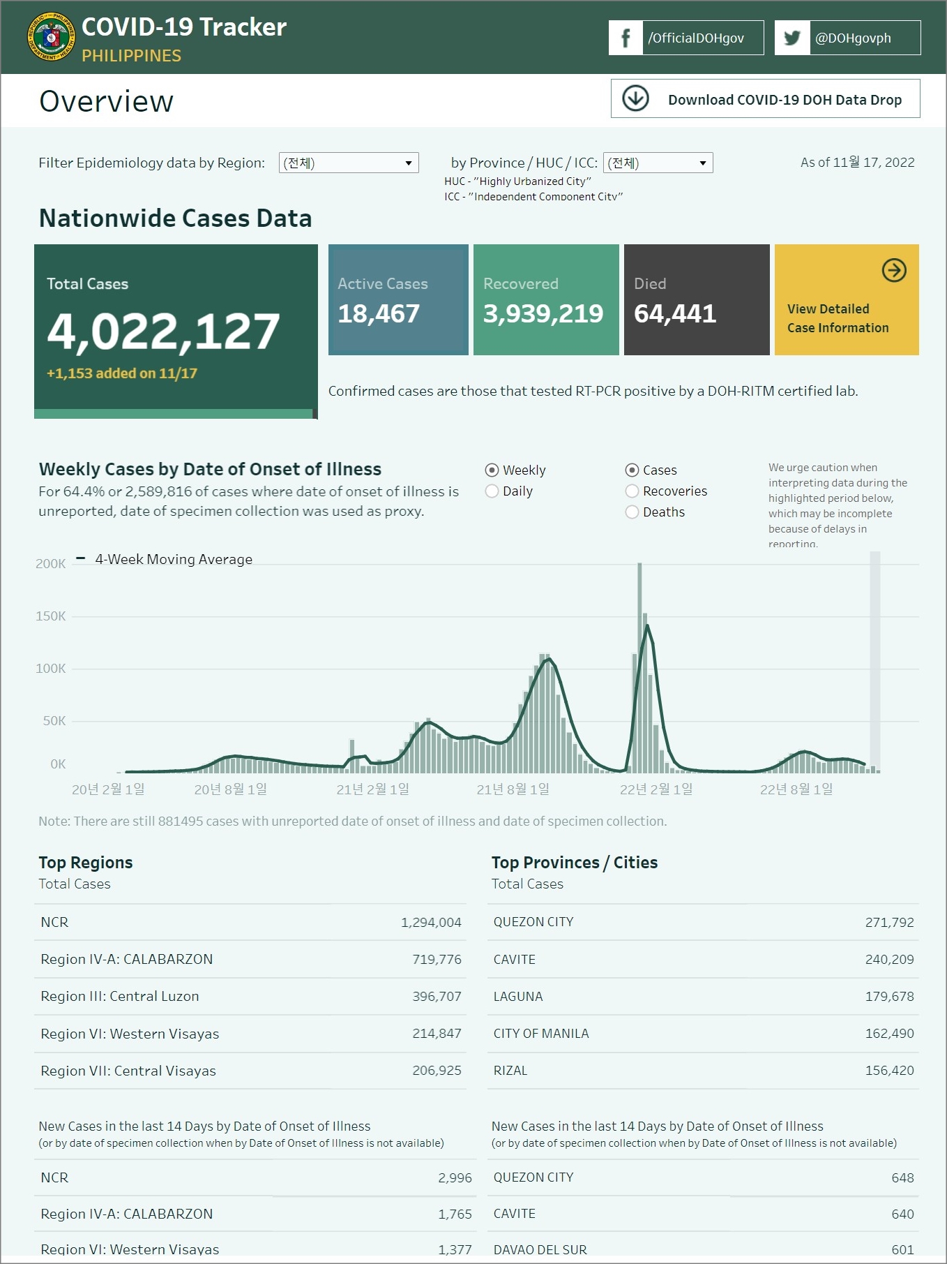 · 필리핀 보건부(DOH. Department of Health) : COVID-19 TRACKER
