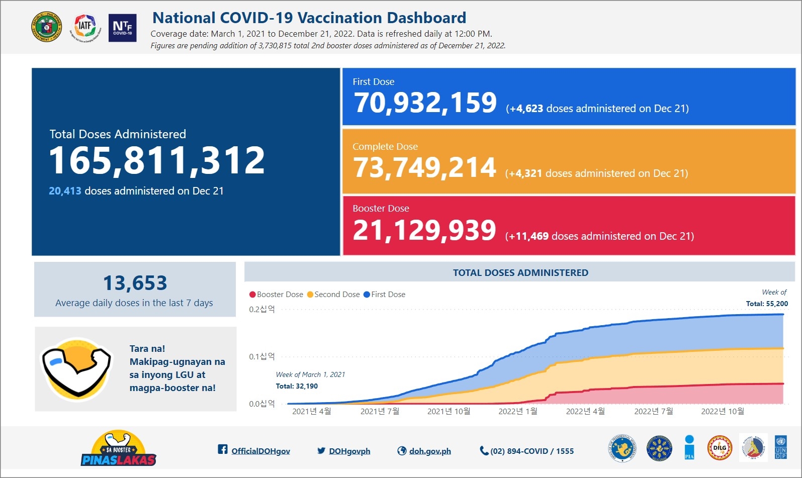 필리핀 코로나19 백신 예방접종 현황 (2022년 12월 21일 현재)