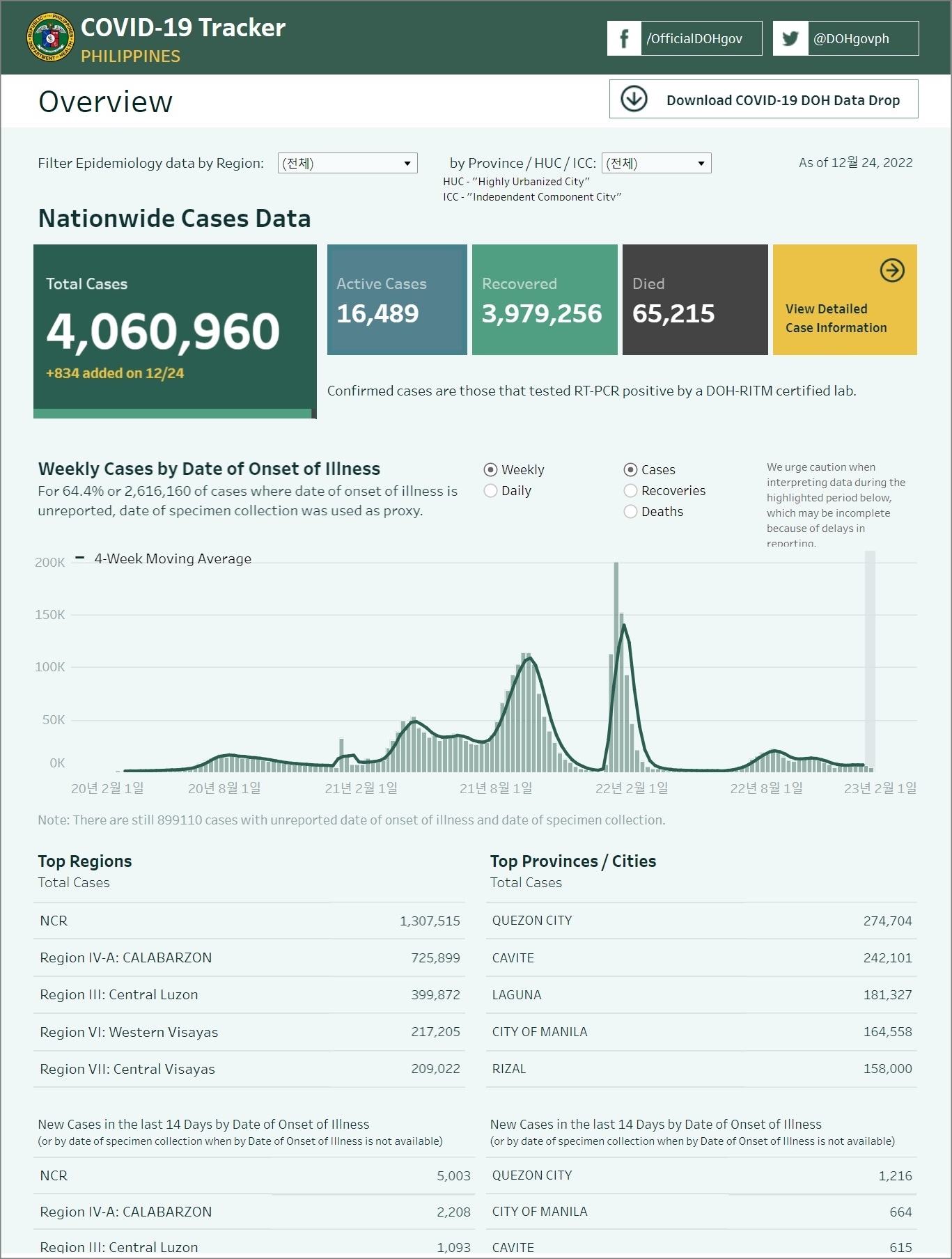 · 필리핀 보건부(DOH. Department of Health) : COVID-19 TRACKER