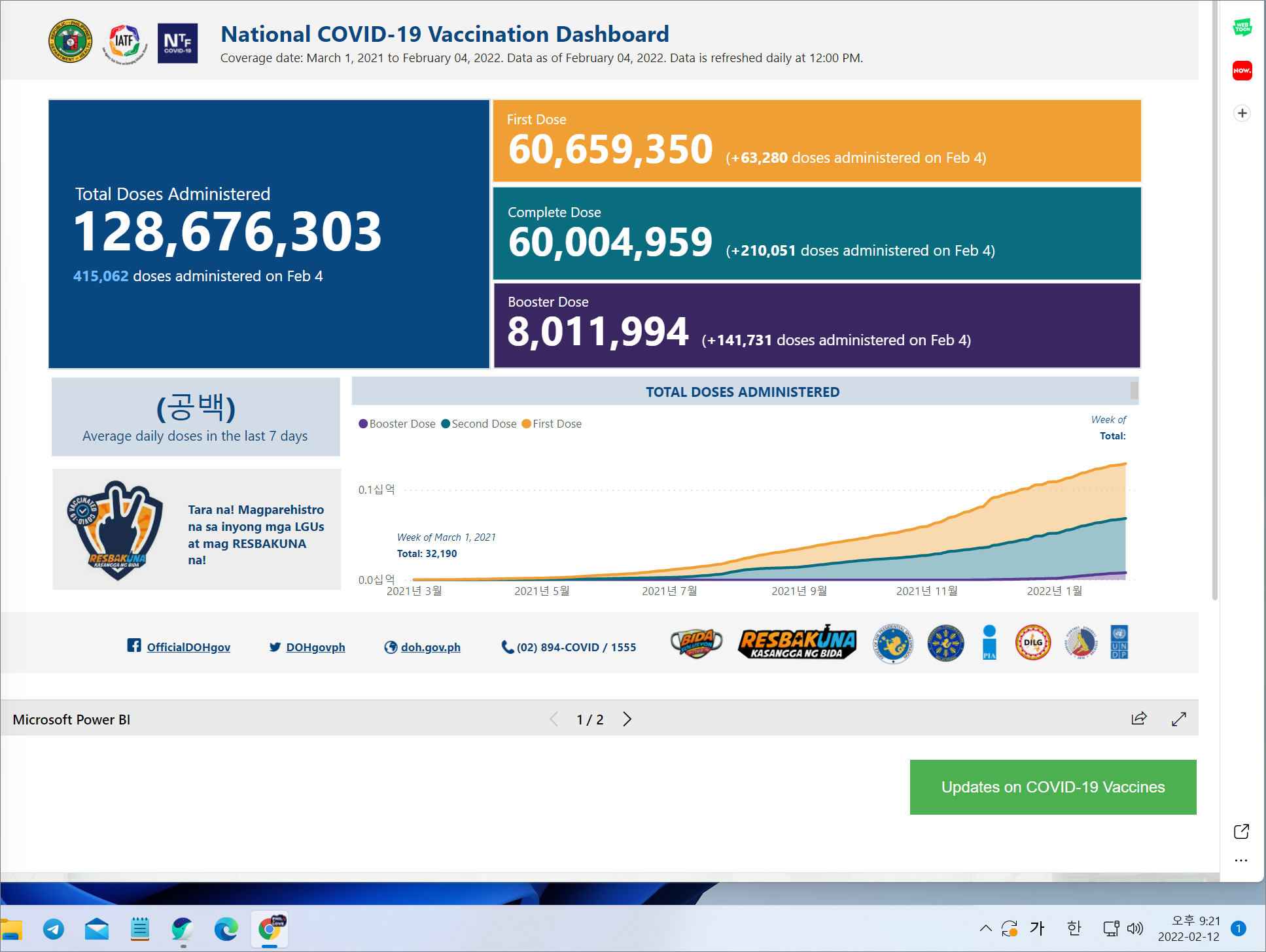 필리핀 코로나19 확진자 현황과 백신 예방접종 현황(2022년 2월 12일 현재)