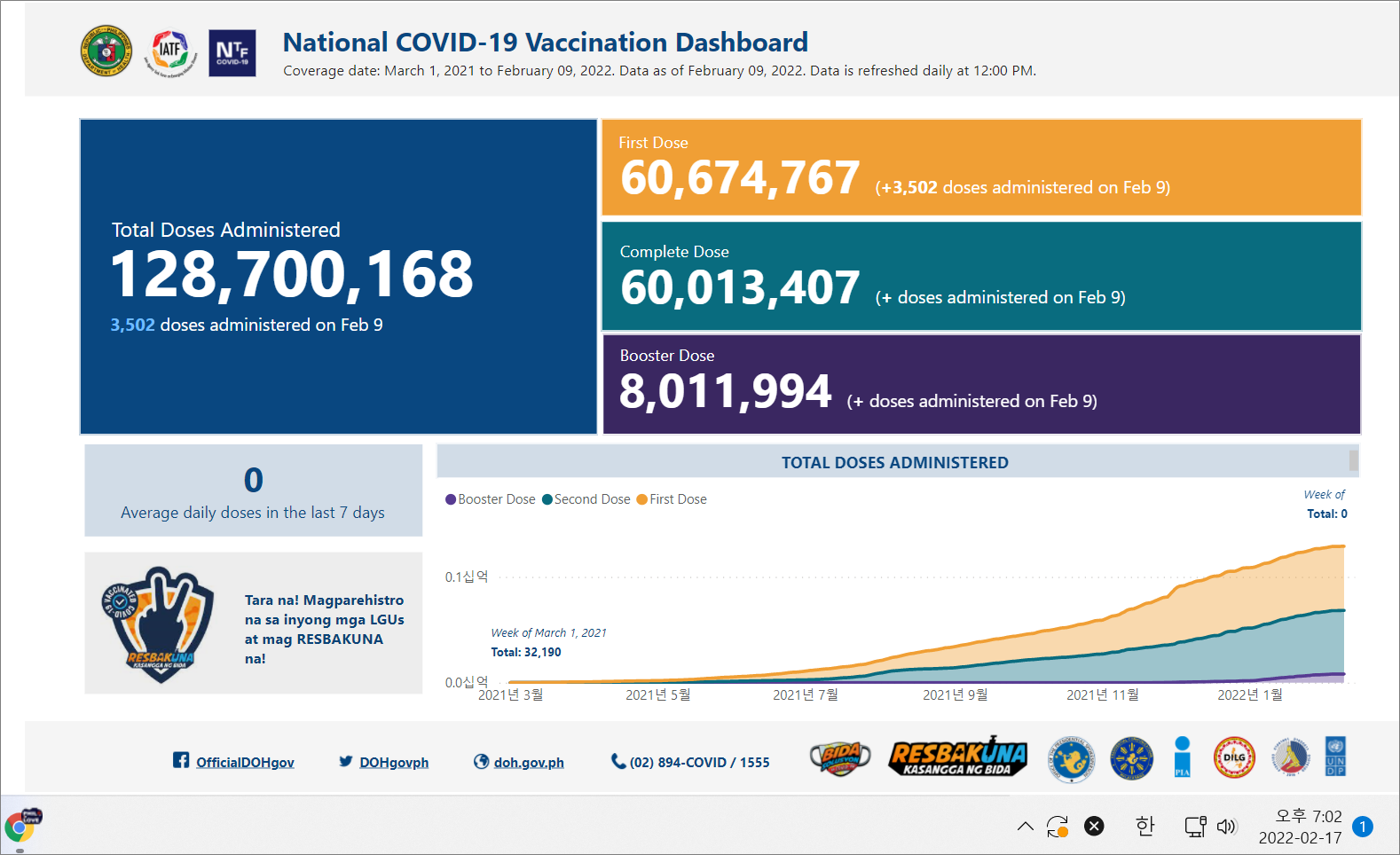 · 필리핀 보건부(DOH. Department of Health) : https://doh.gov.ph/covid19-vaccination-dashboard