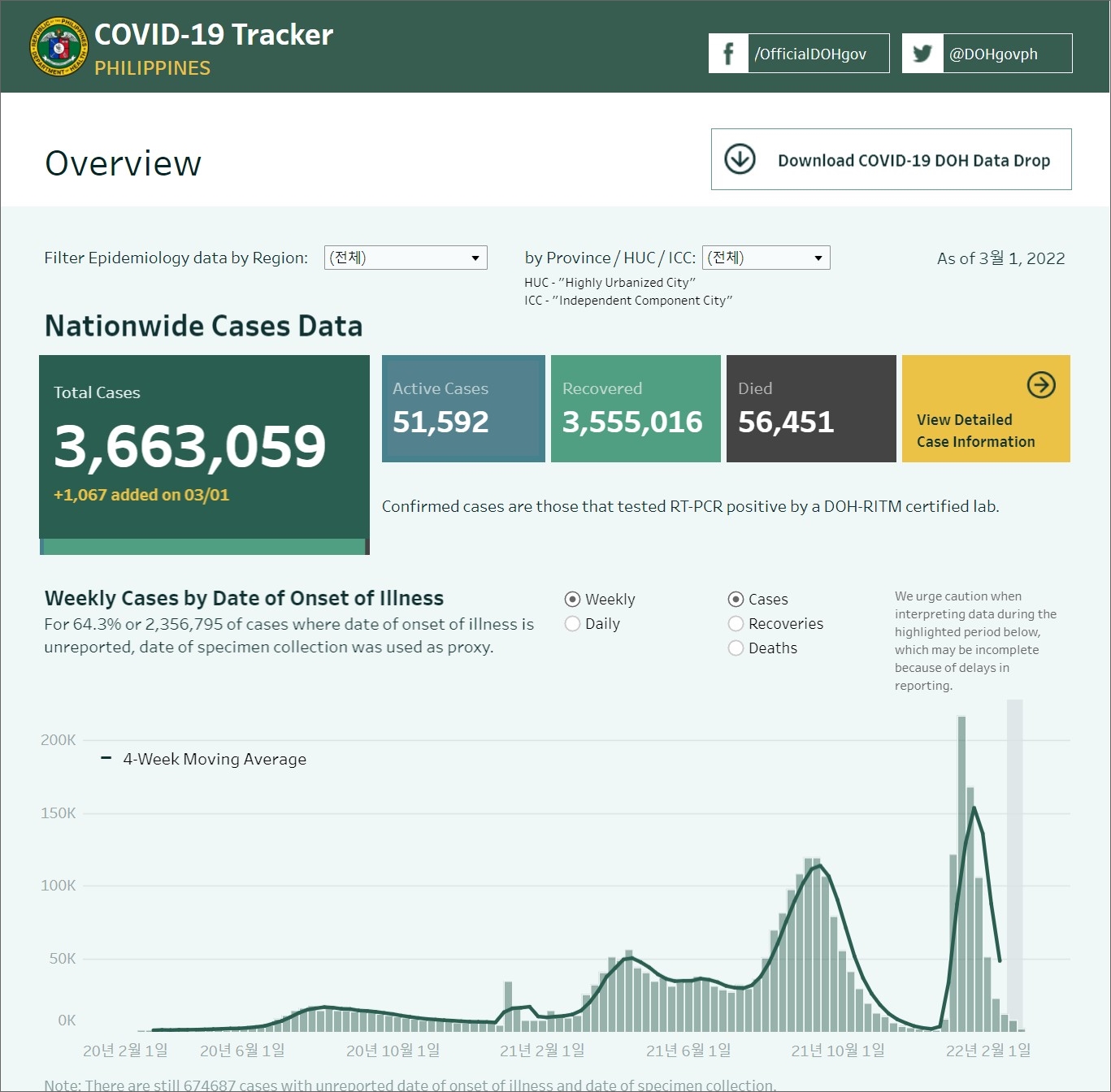 필리핀 코로나19 발생 현황 (2022년 3월 1일 현재)