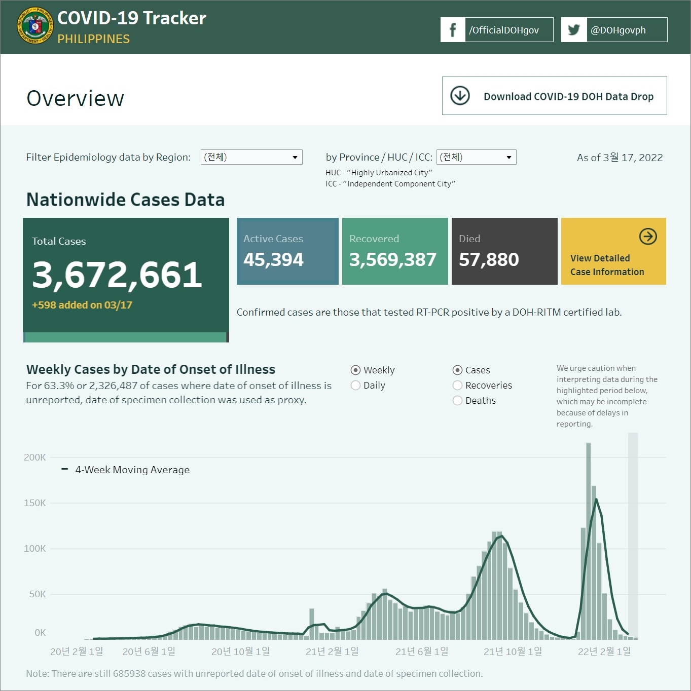 필리핀 코로나19 발생 현황 (2022년 3월 17일 현재)