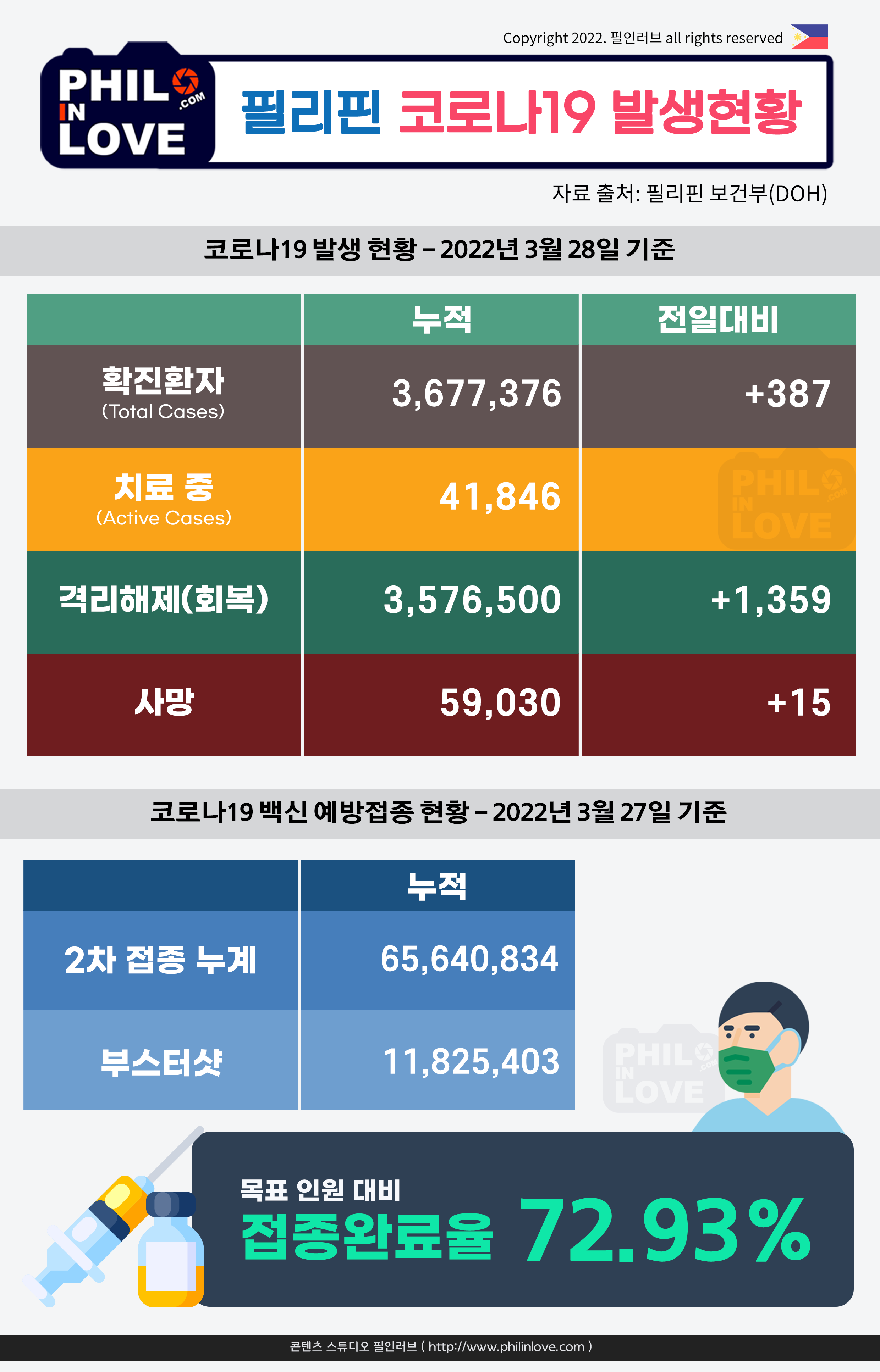 필리핀 코로나19 발생 현황 (2022년 3월 28일 현재)