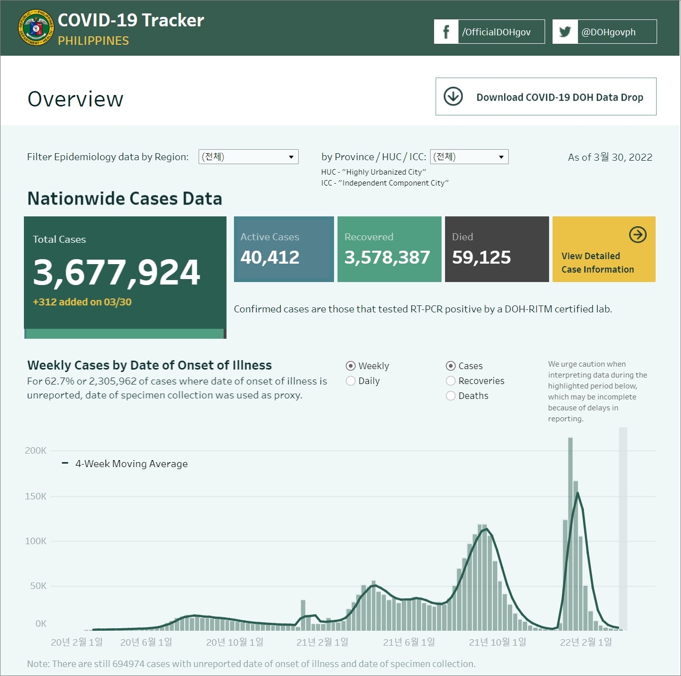 필리핀 코로나19 발생 현황 (2022년 3월 30일 현재)