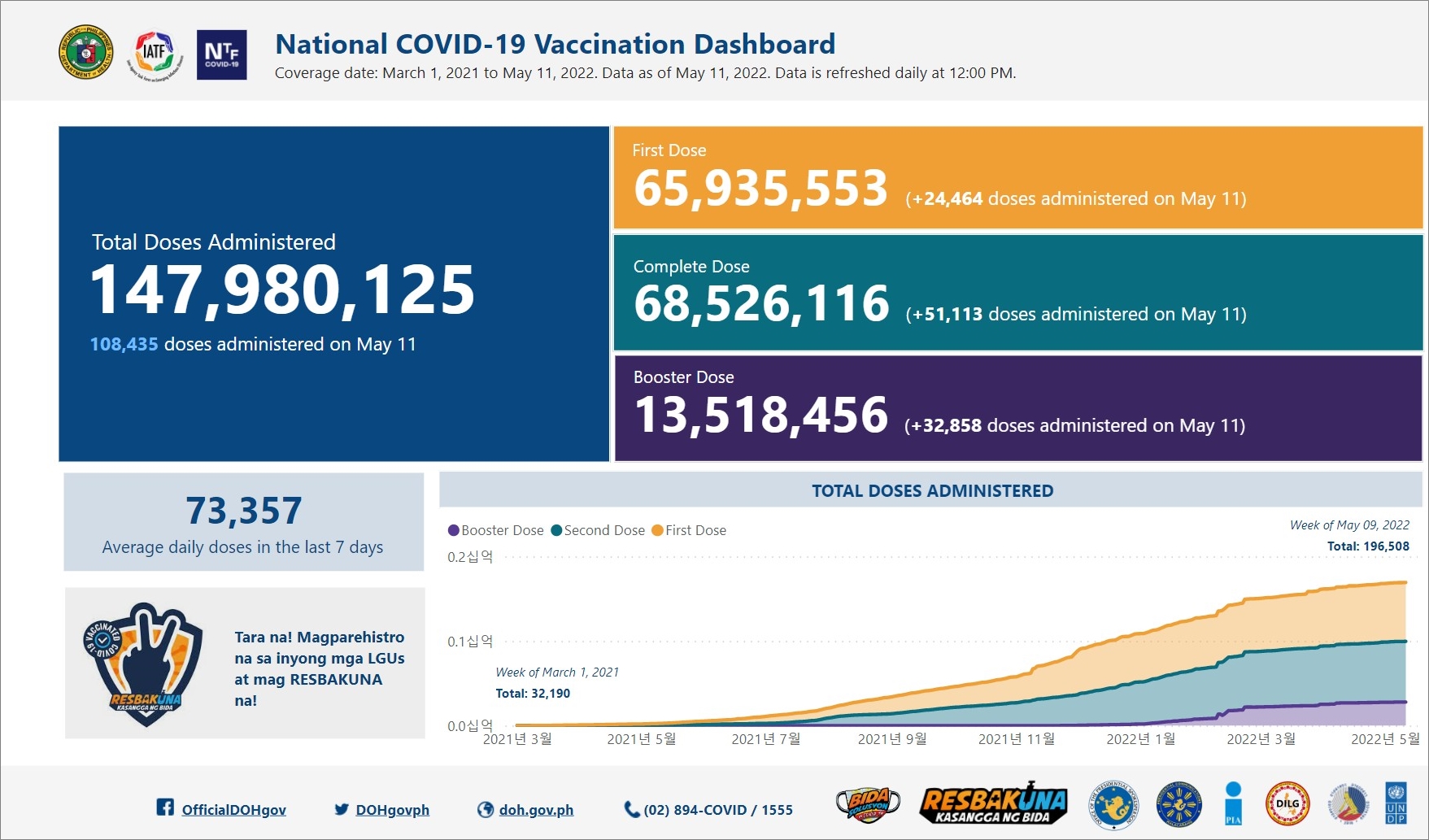 필리핀 코로나19 백신 예방접종 현황 (2022년 5월 11일 현재)