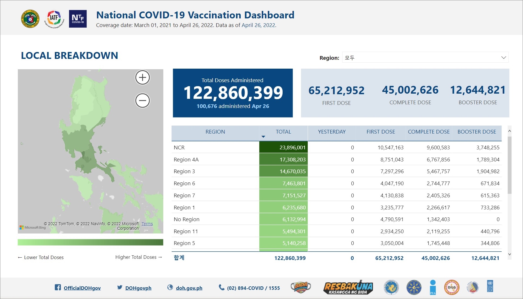 필리핀 코로나19 백신 예방접종 현황 (2022년 5월 1일 현재)