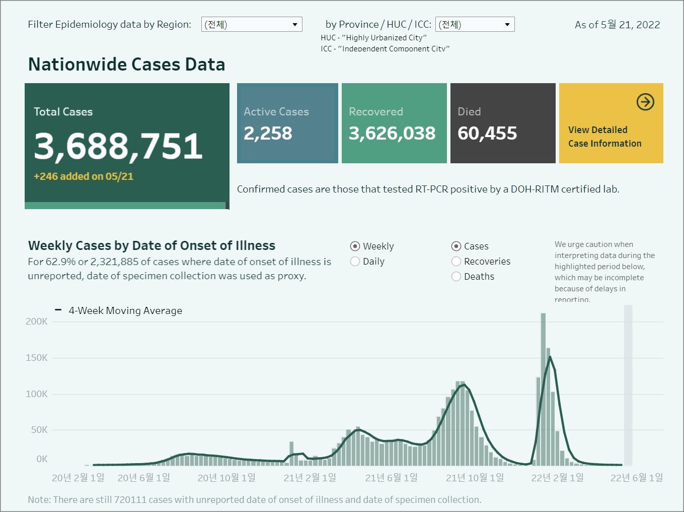 필리핀 코로나19 발생 현황 (2022년 5월 21일 현재)