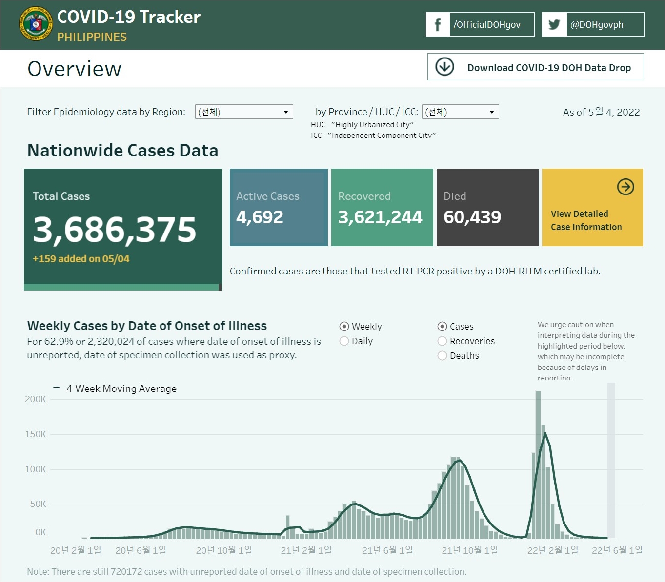 필리핀 코로나19 발생 현황 (2022년 5월 4일 현재)