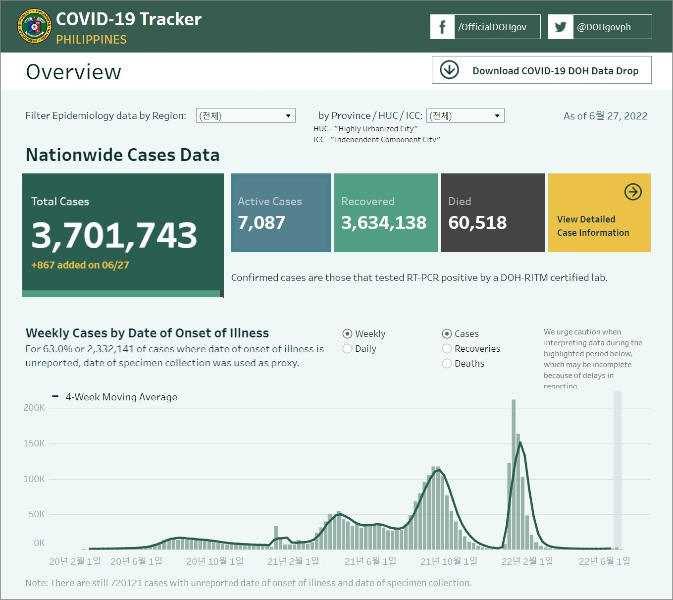 필리핀 코로나19 발생 현황 (2022년 6월 27일 현재)