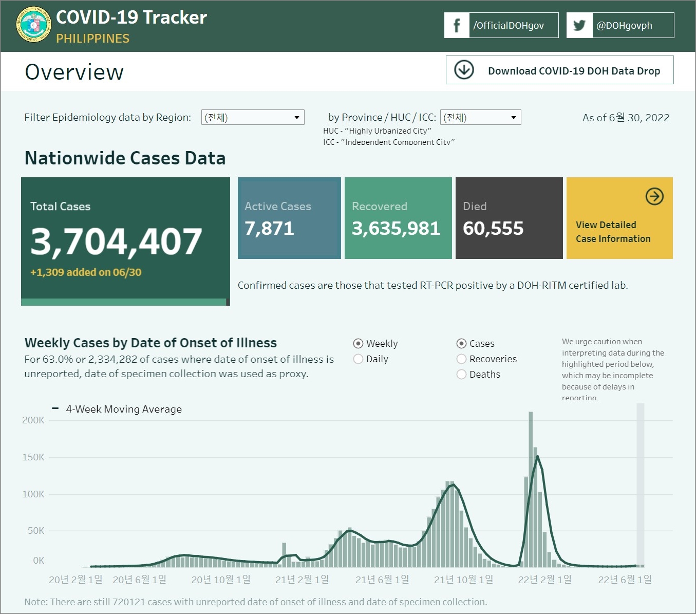 필리핀 코로나19 발생 현황 (2022년 6월 30일 현재)