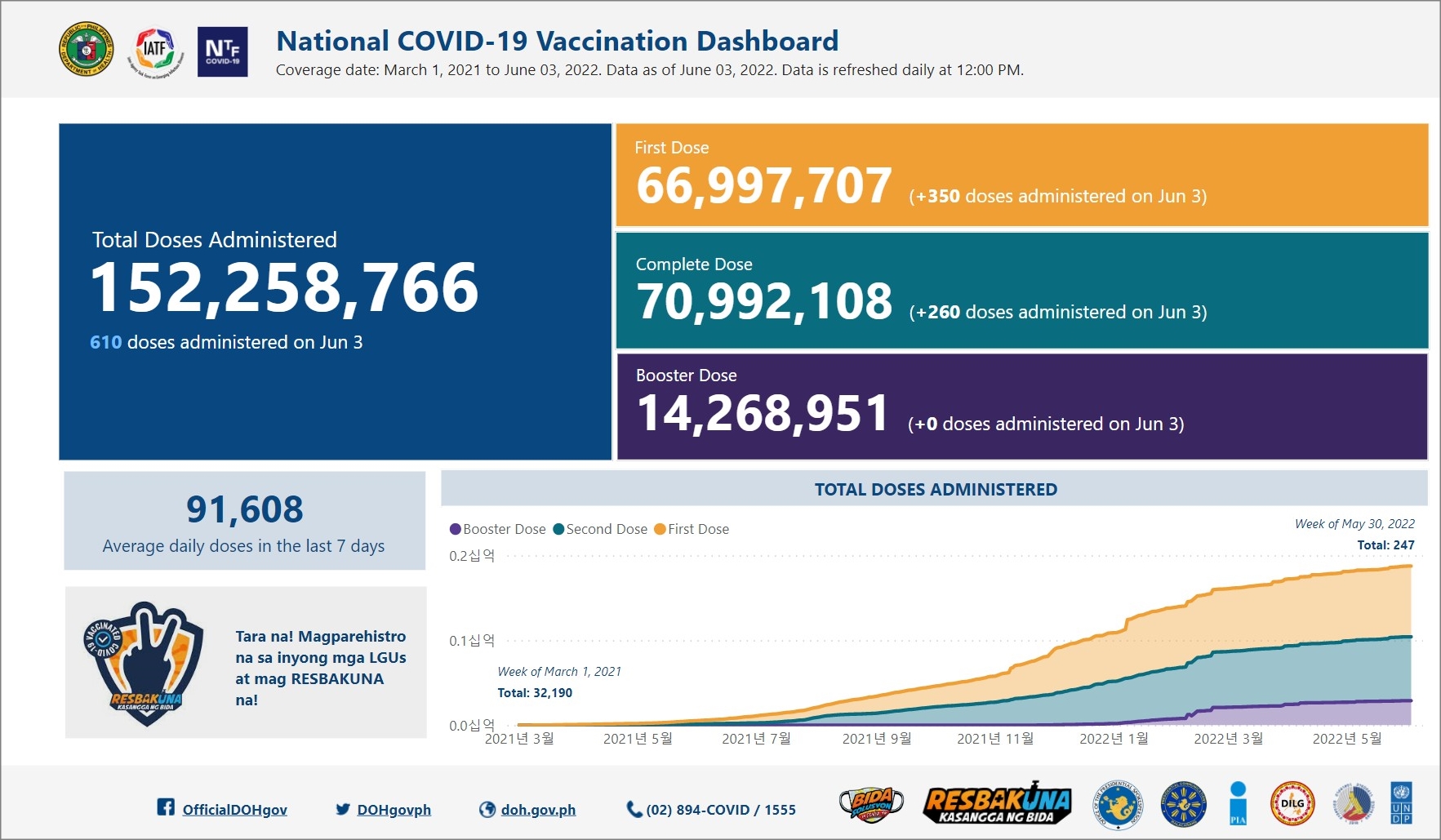 필리핀 코로나19 백신 예방접종 현황 (2022년 6월 3일 현재)