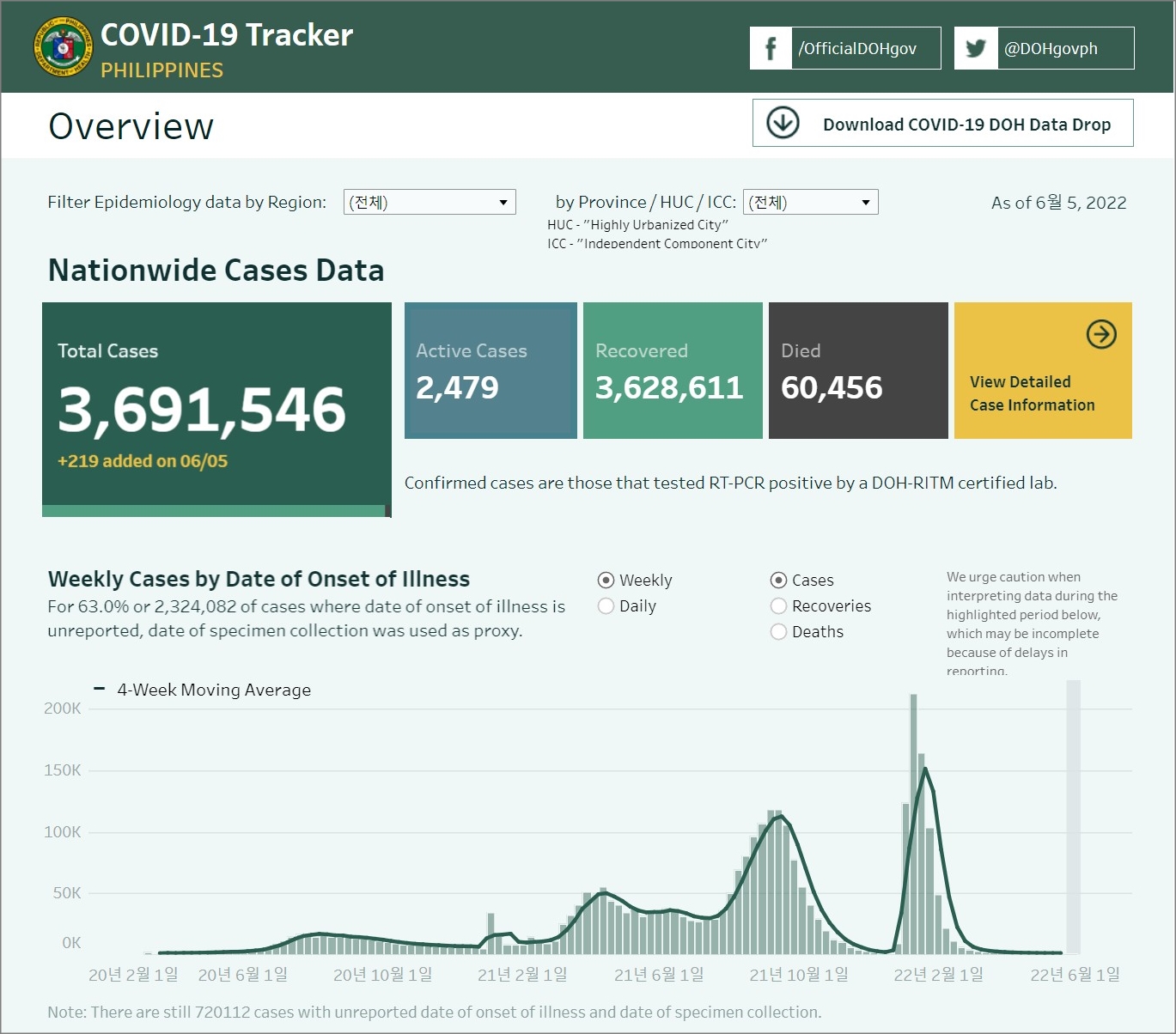 필리핀 코로나19 발생 현황 (2022년 6월 5일 현재)