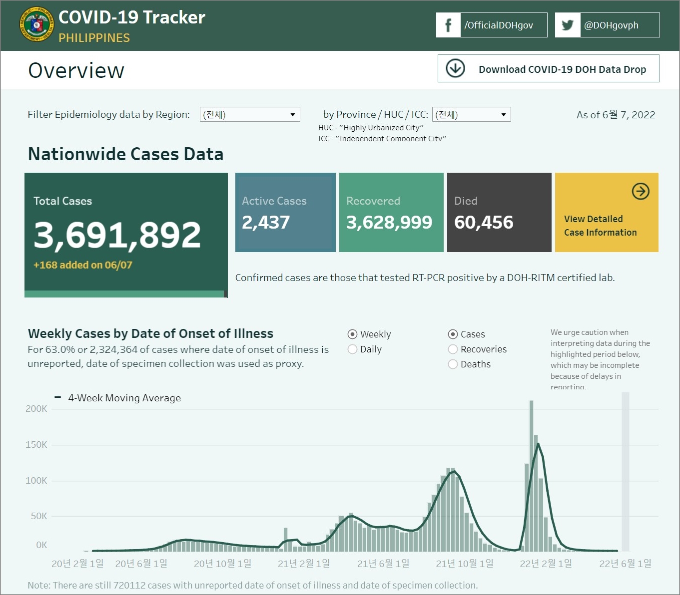 필리핀 코로나19 발생 현황 (2022년 6월 7일 현재)