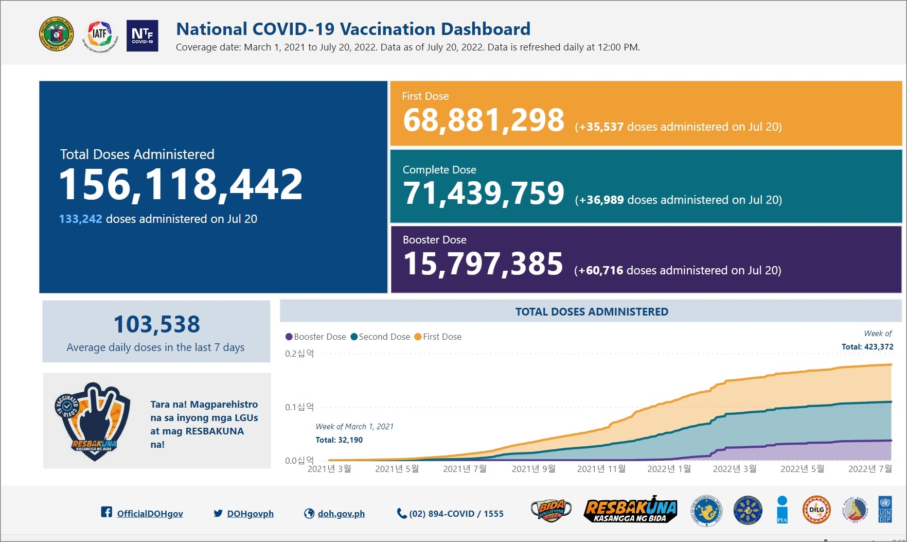 필리핀 코로나19 백신 예방접종 현황 (2022년 7월 20일 현재)