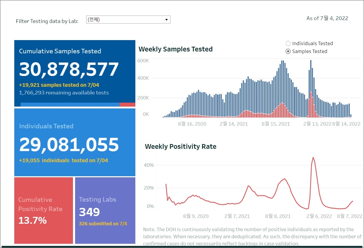 필리핀 코로나19 확진자 현황2022년 7월 5일 현재)