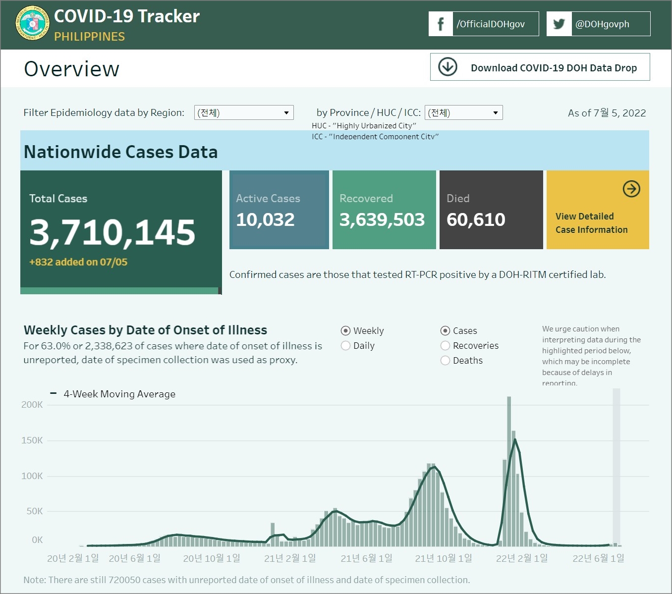 필리핀 코로나19 발생 현황 (2022년 7월 5일 현재)