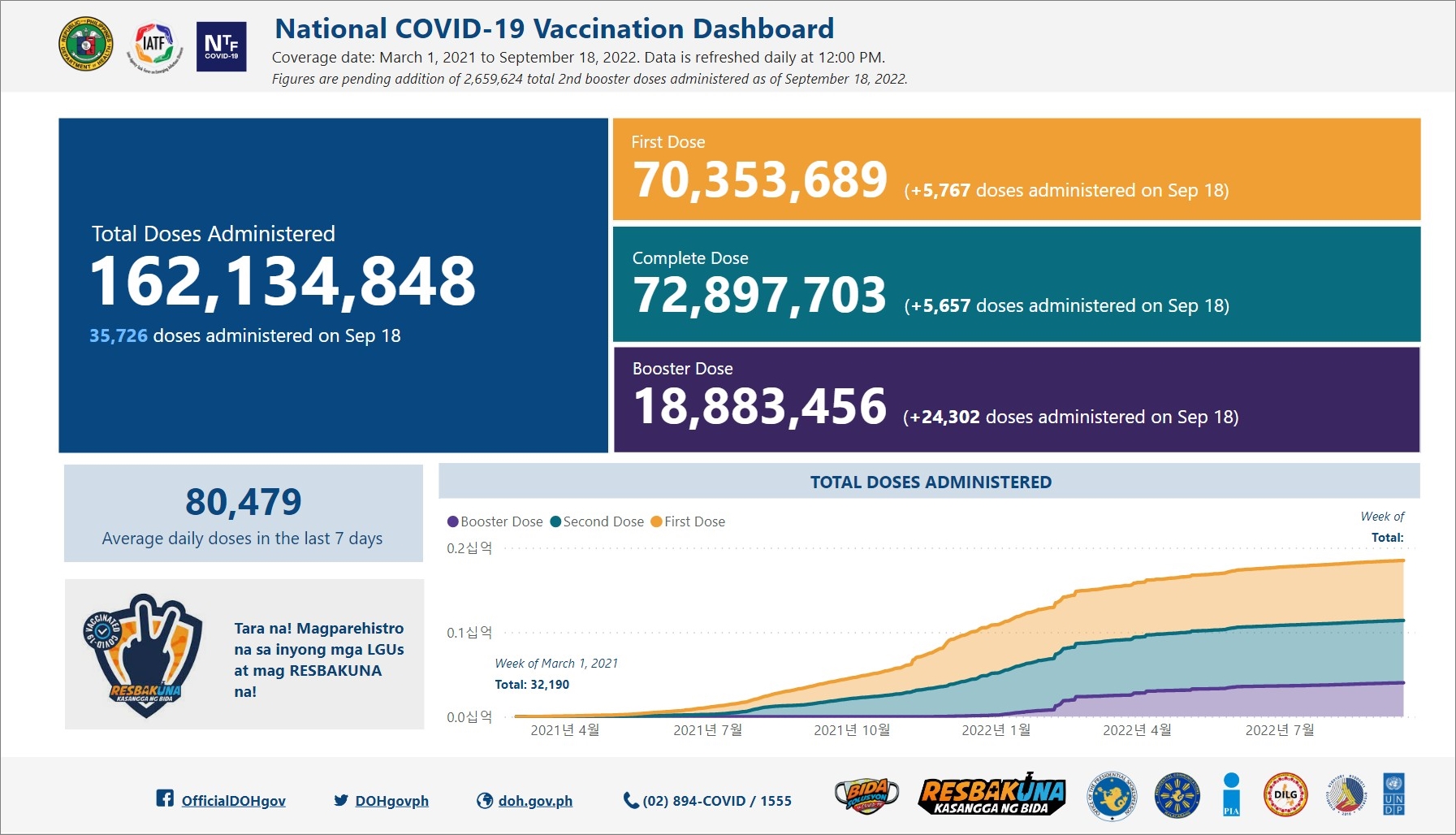필리핀 코로나19 백신 예방접종 현황 (2022년 9월 18일 현재)