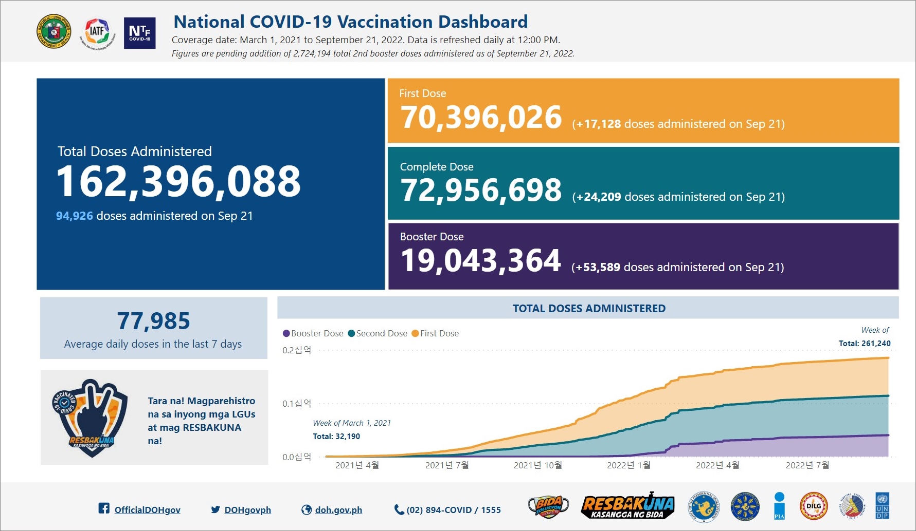 필리핀 코로나19 백신 예방접종 현황 (2022년 9월 21일 현재)