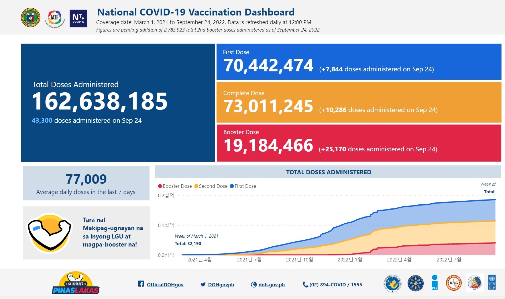 필리핀 코로나19 백신 예방접종 현황 (2022년 9월 24일 현재)