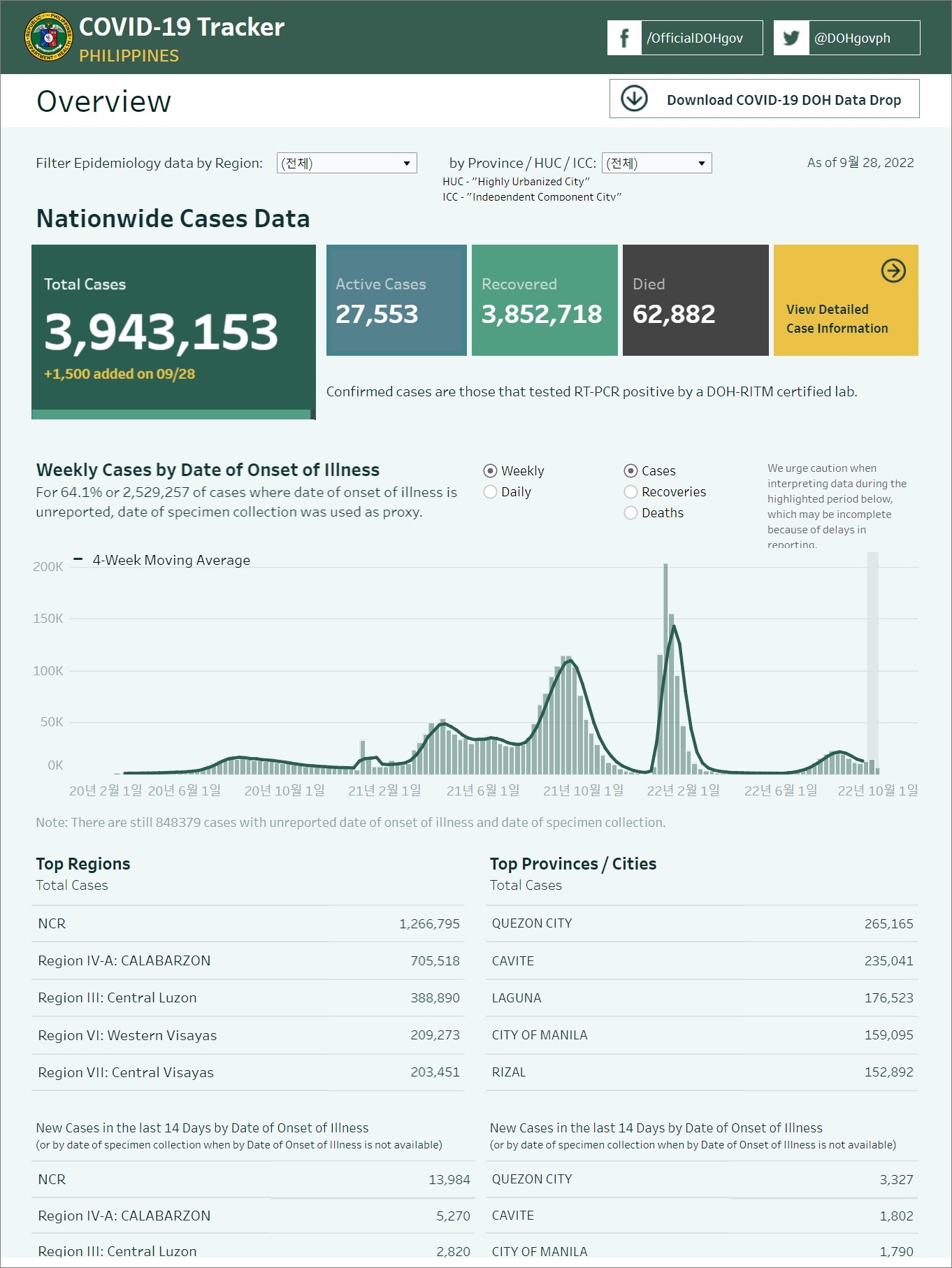 필리핀 코로나19 발생 현황 (2022년 9월 28일 현재)