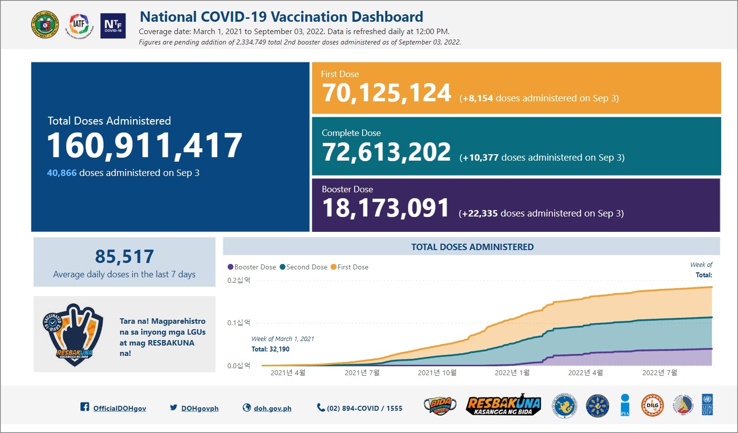 필리핀 코로나19 백신 예방접종 현황 (2022년 9월 3일 현재)
