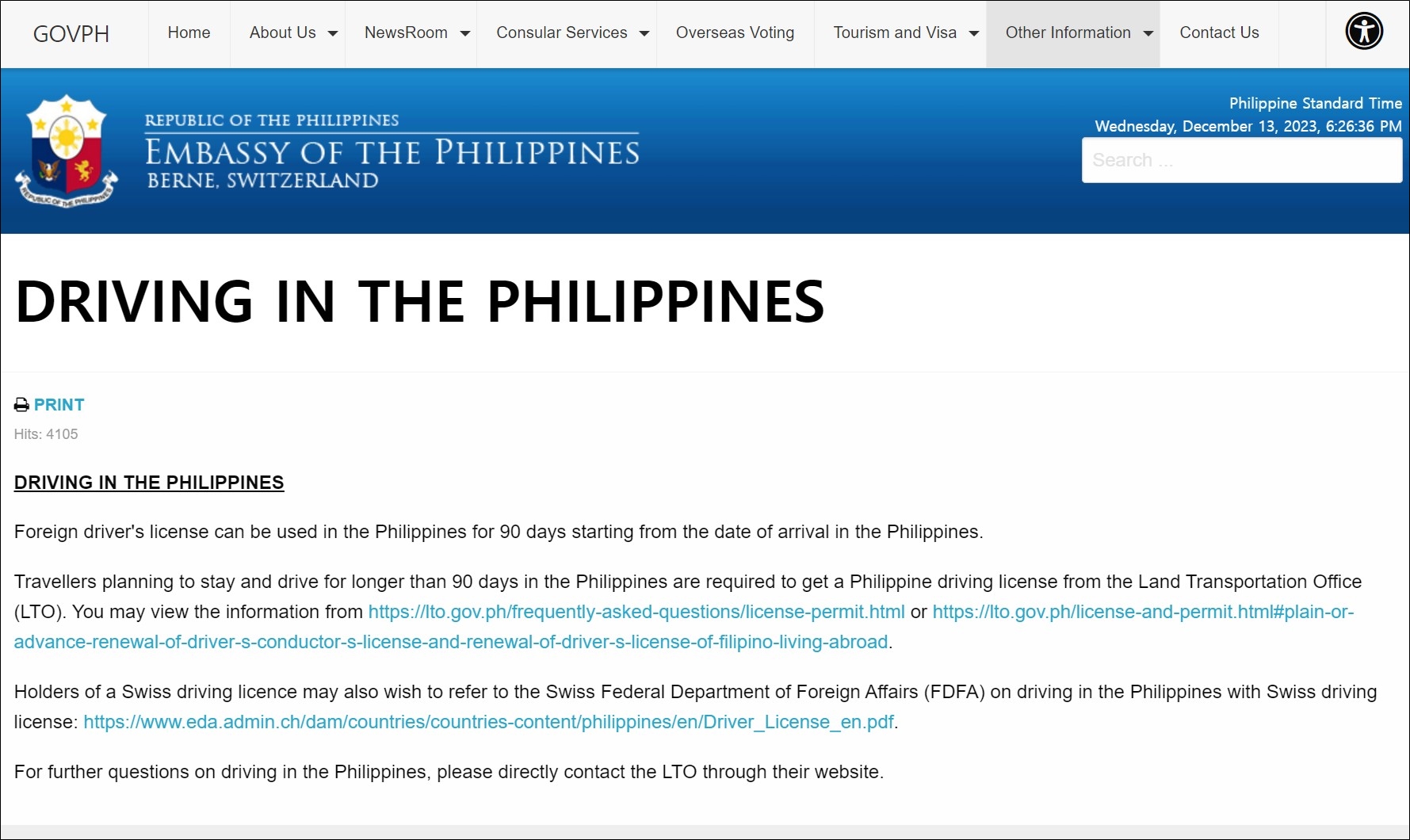 · Embassy of the Philippines in Berne, Switzerland: DRIVING IN THE PHILIPPINES