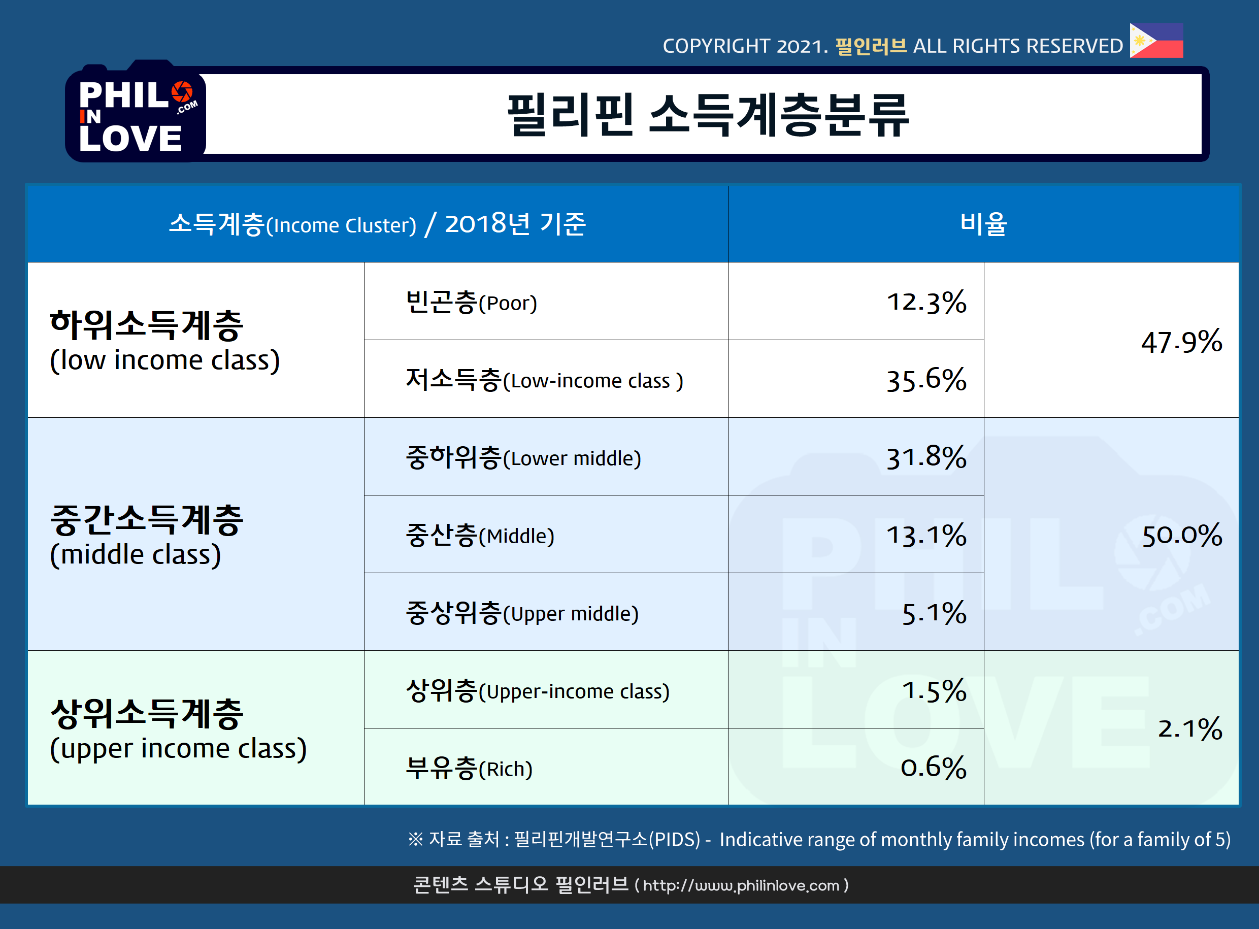 [필리핀 경제] 필리핀개발연구소(PIDS)의 소득계층 분류와 계층별 소득 수준