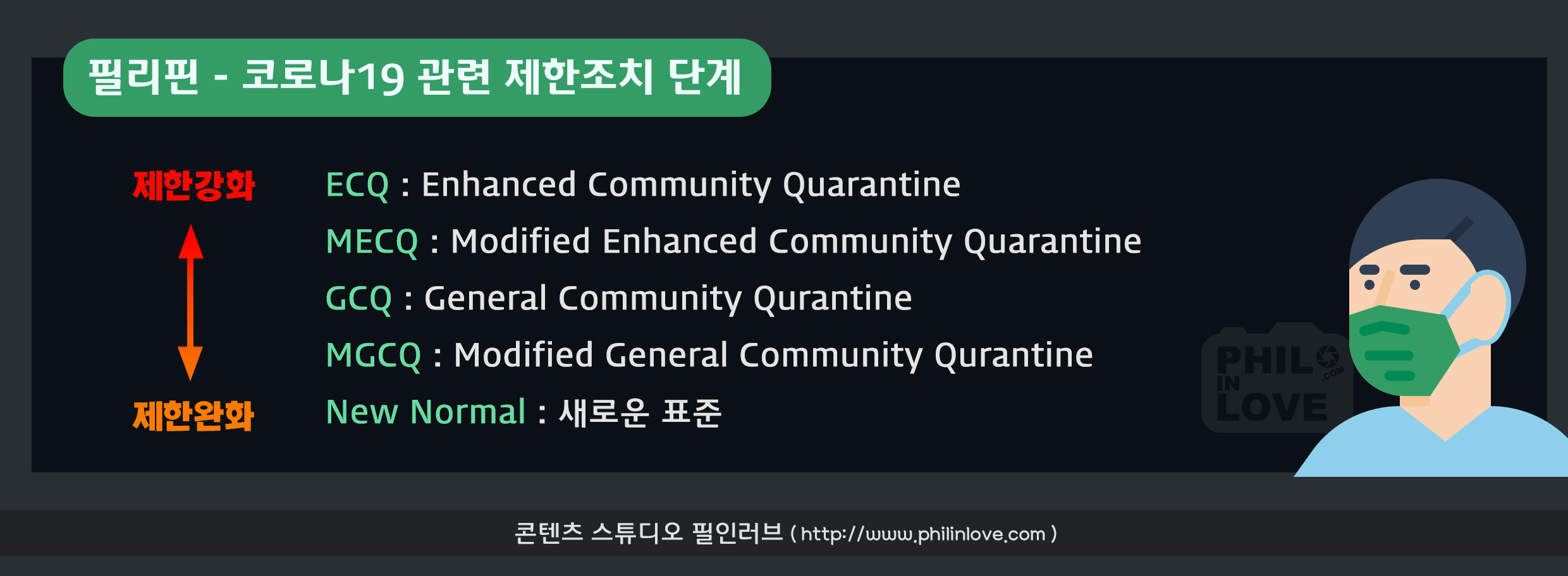 * ECQ : 강화된 지역사회 격리조치(Enhanced Community Quarantine). 코로나19 방역 수위 최고 단계이다.