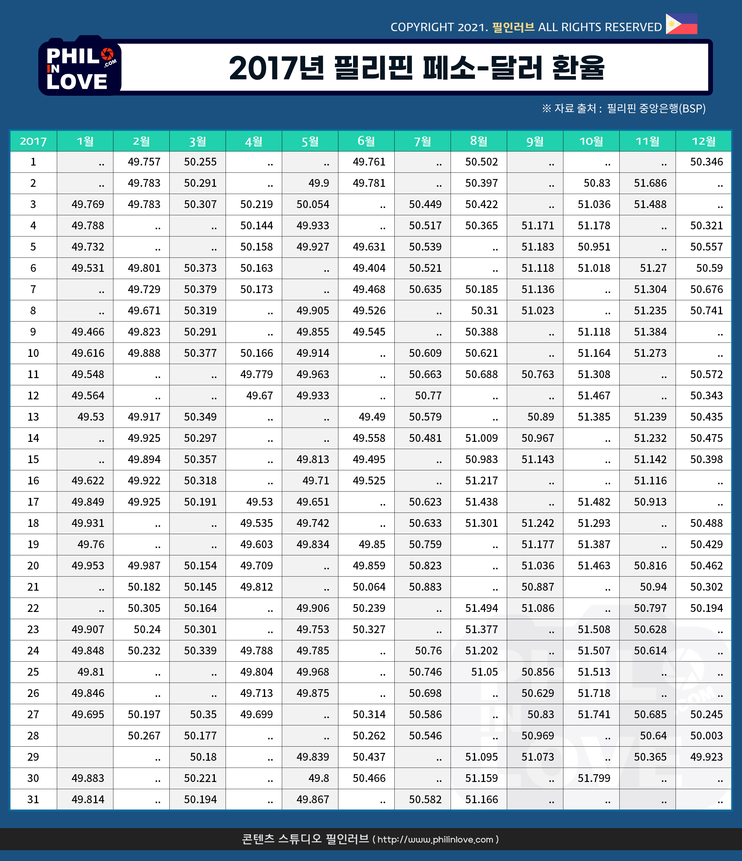 Exchange Rates - Philippine Peso per US Dollar