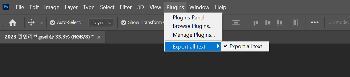 ② 텍스트 추출이 필요한 PSD파일을 열고 플러그인(Plugin) 선택