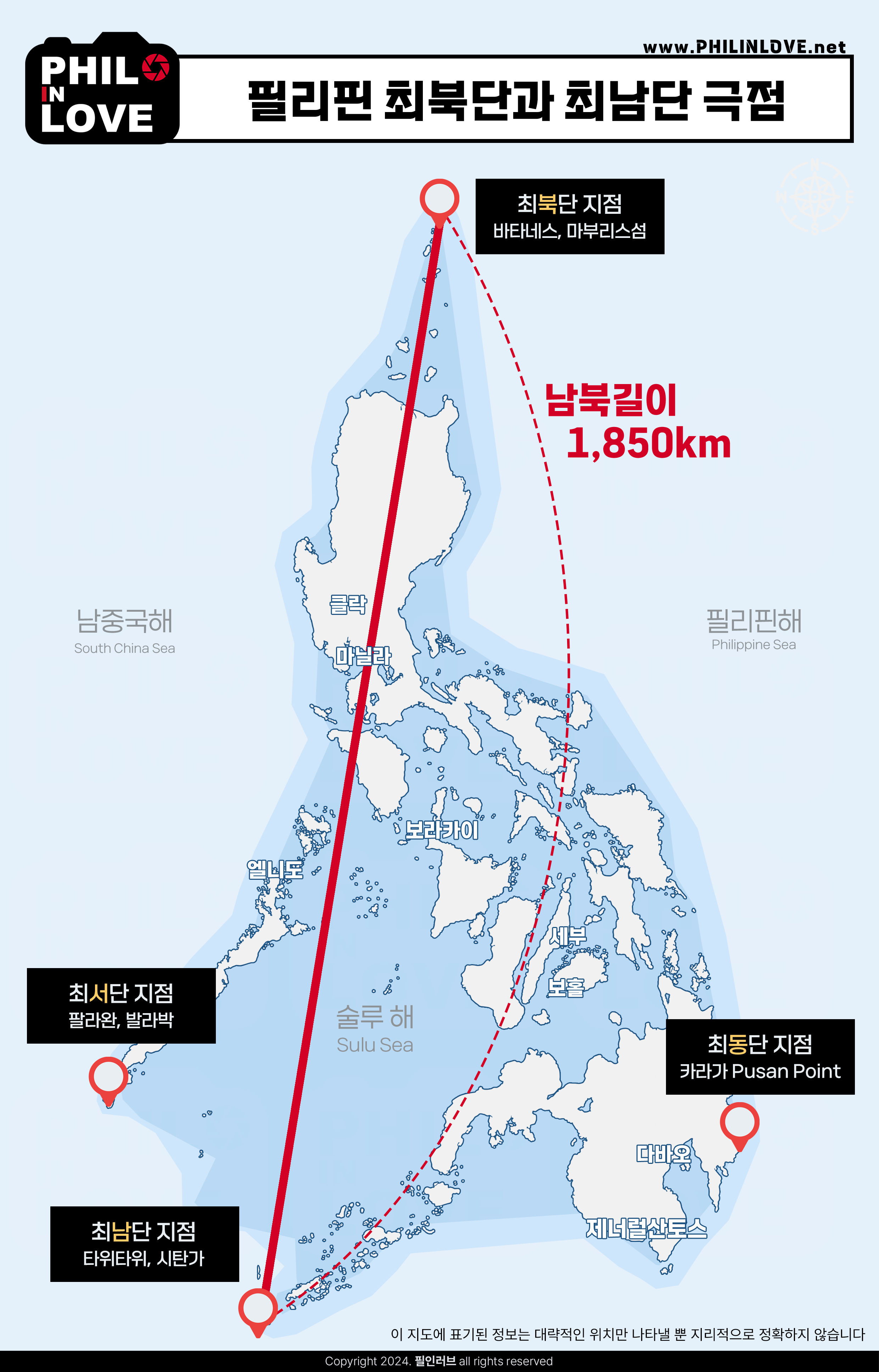 필리핀 지도: 최북단에서 최남단까지 필리핀의 극점(최극단)
