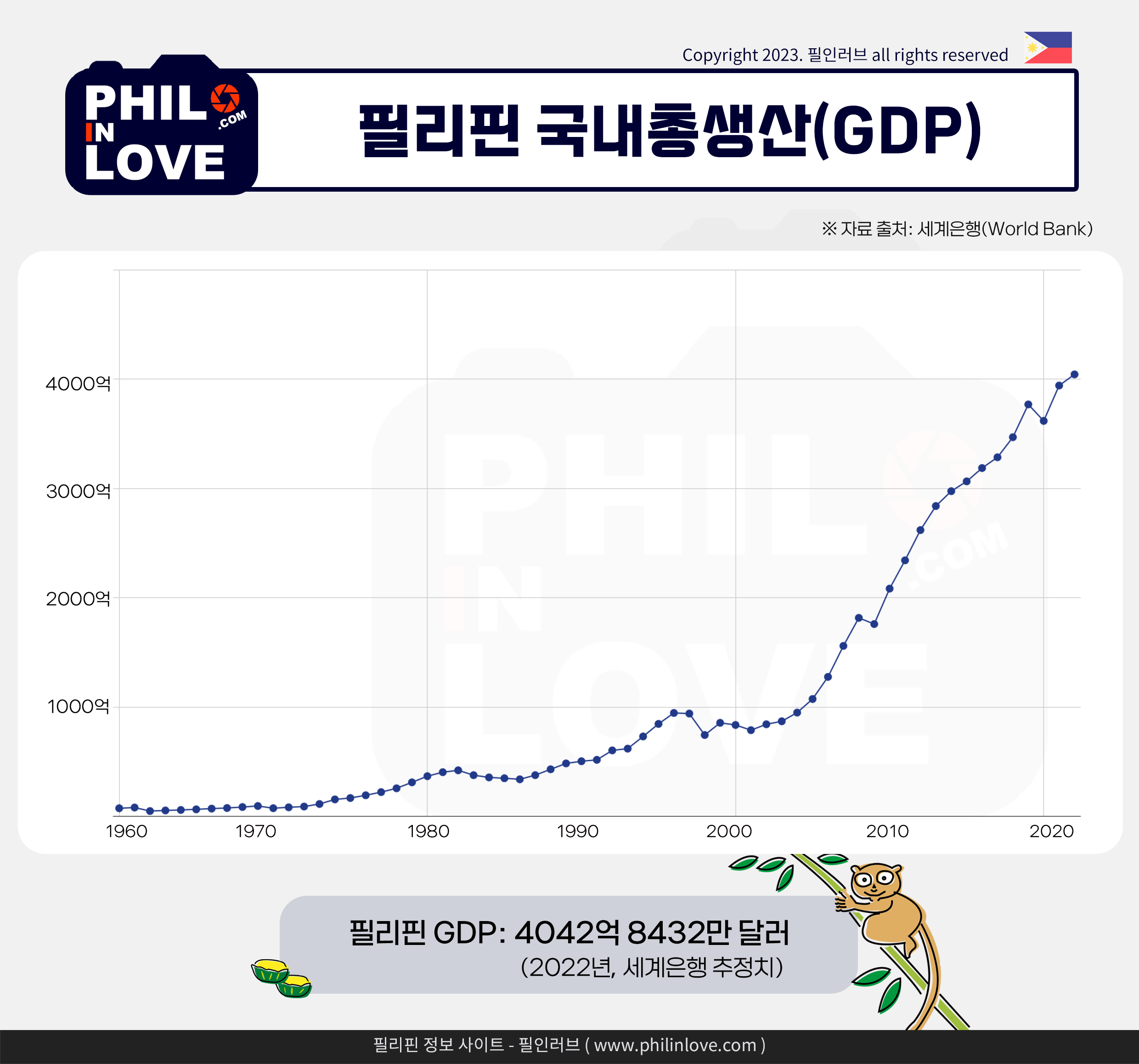 | [필리핀 경제] 한국 vs 필리핀 1인당 국민총소득 GNI 비교 : 1962년~2022년 (0) | 2023.12.29 |