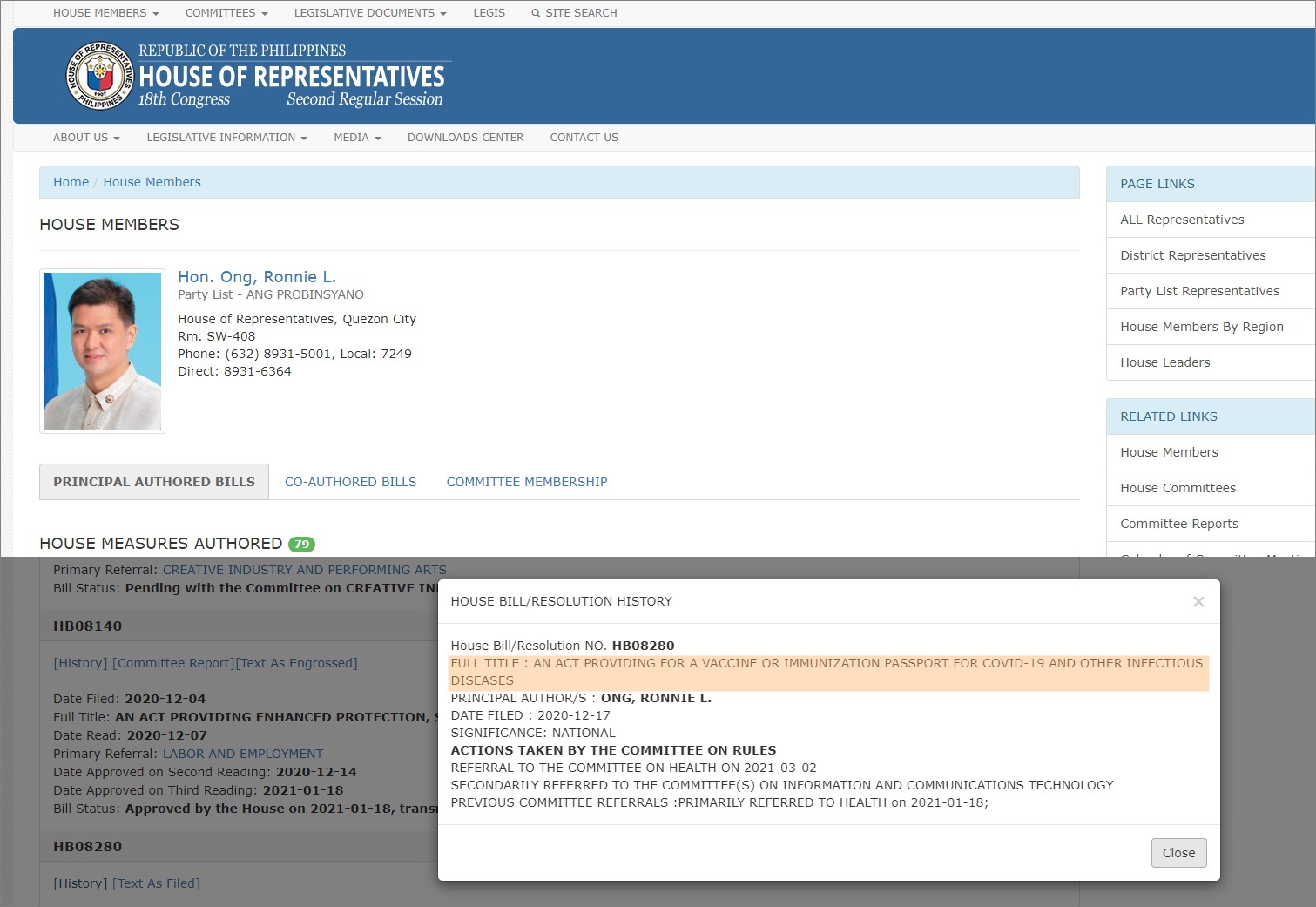 아직 백신 접종조차 시작되지 못한 상황에서 백신여권을 논하기는 좀 이른 감이 있지만, 필리핀에서도 백신접종증명서(백신여권) 관련하여 여러 가지 이야기가 나오고 있다. 필리핀 정부에서는 관련하여 어떻게 준비하고 있을지 궁금하다면, 지난해 하원에 제출된 법안을 보면 된다.