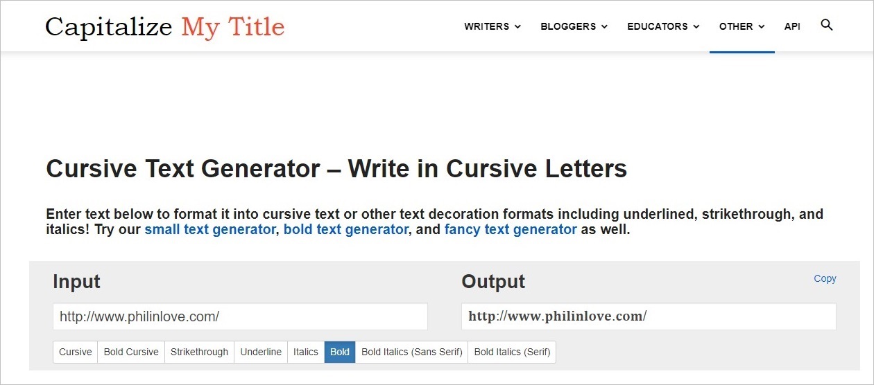 ② 텍스트 생성기로 글씨에 굵은 글씨(bold text) 글꼴 효과 넣고 클립 보드에 복사