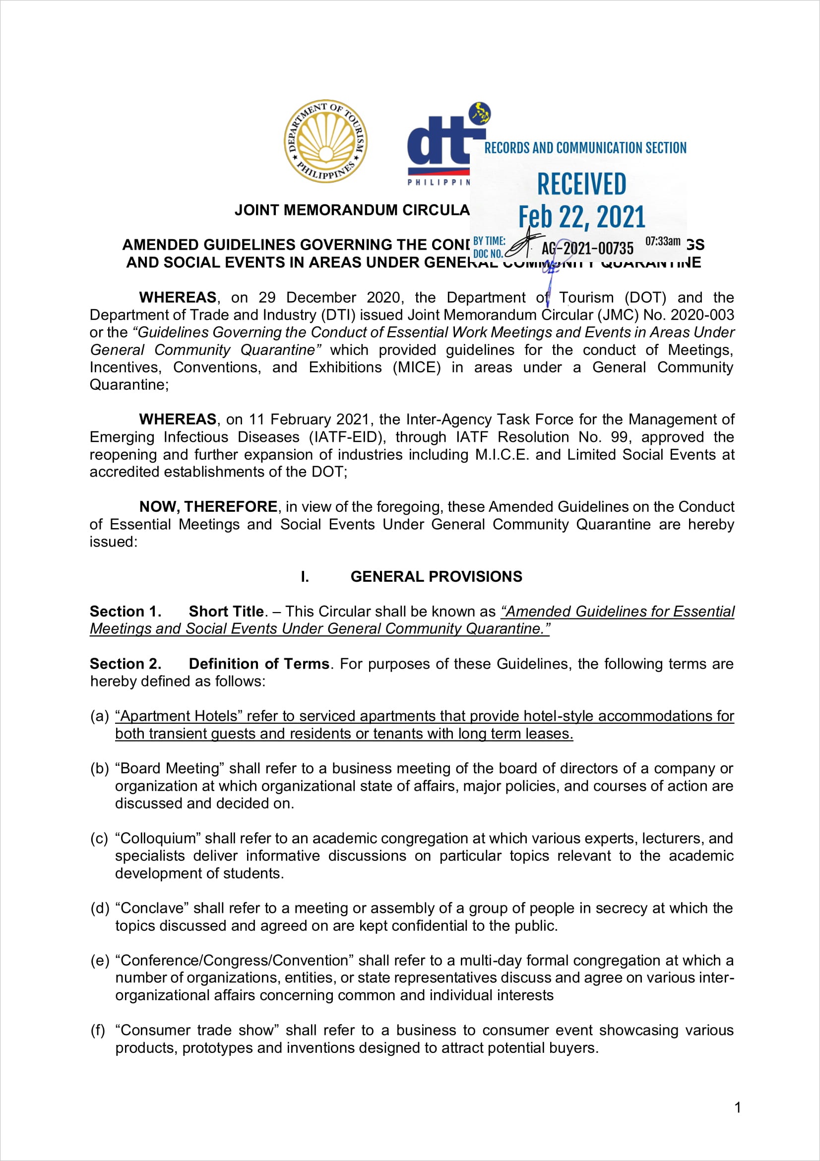 · DTI Philippines : Joint Memorandum Circular No. 2021-001