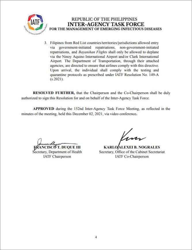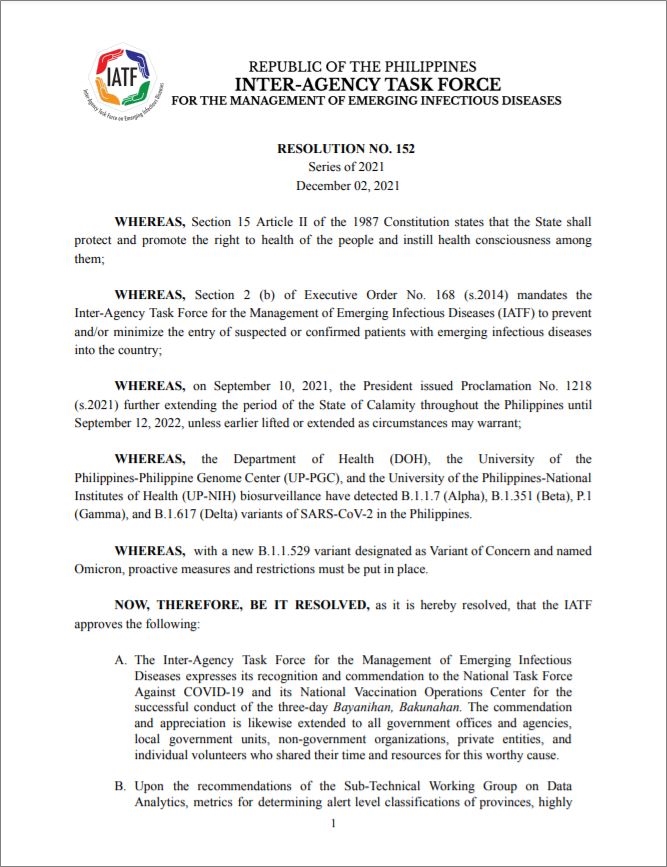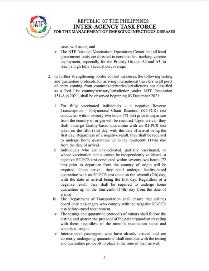 · Philippine News Agency : IATF sets new testing, quarantine rules for inbound travelers