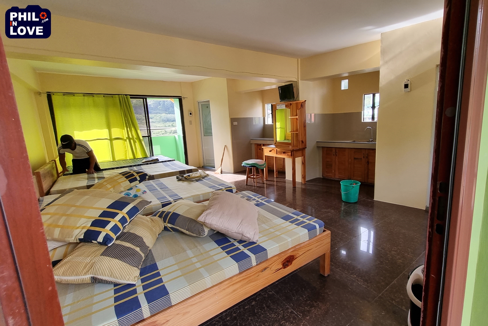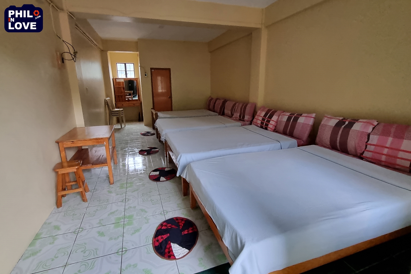 호텔 예약 사이트에서 빈방이 있다는 호텔 이름을 대충 확인하고, 예약을 하기 전에 방 상태를 보러 호텔에 다녀오기로 했다. 그랜드마스 옐로우 하우스(Grandma's Yellow House)의 이코노미 패밀리룸의 객실 크기가 60m²라고 표기되어 있는데 도무지 믿기 어려워서이다. 사가다 메인 도로 쪽으로는 오밀조밀 작은 집이 대부분인 것으로 알고 있는데 시내에 그렇게 큰 객실이 있다니 잘못 표기한 것이 아닐까 하는 의심이 든다. 그리고 내 추측이 정확했음을 확인했다. 패밀리룸의 실체는 침대 두 개가 놓인 작은 방에 불과했다. 60m²가 아닌 16m²도 될지 모를 정도로 작은 방이다. 방 상태는 나쁘지 않았지만 공용욕실을 써야 한다는 설명에 숙박하기를 포기하고 다른 곳을 찾기로 했다.