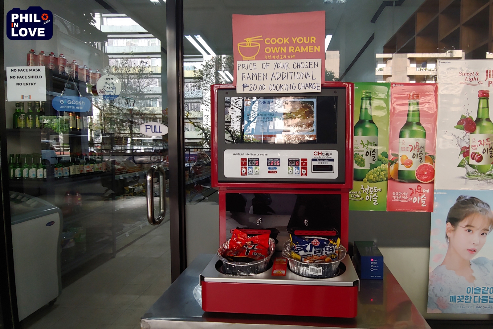 마카티 리들도쿄(Little Tokyo) 근처를 지나다가 새로 한국슈퍼가 생긴 것을 발견했다. 가게 이름이 가야마트(Kaya Mart)이고 바로 옆에 가야 한국식당이 있는 것으로 보아서 식당 사장님이 슈퍼 문을 연 모양이다. 특별히 살 것은 없어도 한국슈퍼가 새로 생겼으니 들어가 보지 않을 수 없다. 그런데 가게 안에 들어가기 전에 내 발걸음을 붙잡은 것은 다름이 아닌 라면자판기였다. 이런 것을 앞에 두고 입을 쩍 벌리고 감탄하는 인간은 되고 싶지 않지만, 이런 것이 있다고 말로만 들었지 실제 본 것은 처음이라 신기한 마음을 감추기 어렵다. 최대한 아무렇지 않다는 얼굴로, 라면 자동판매기와 같은 것은 매일매일 본다는 표정으로 기계를 세심하게 관찰한 뒤 가게 안으로 들어가서 몇 가지 물건을 골라 나왔다. 잠깐 망설였지만, 라면을 먹으려면 마스크를 벗어야 한다는 두려움이 기계 작동을 해보고 싶다는 호기심을 이겼다.