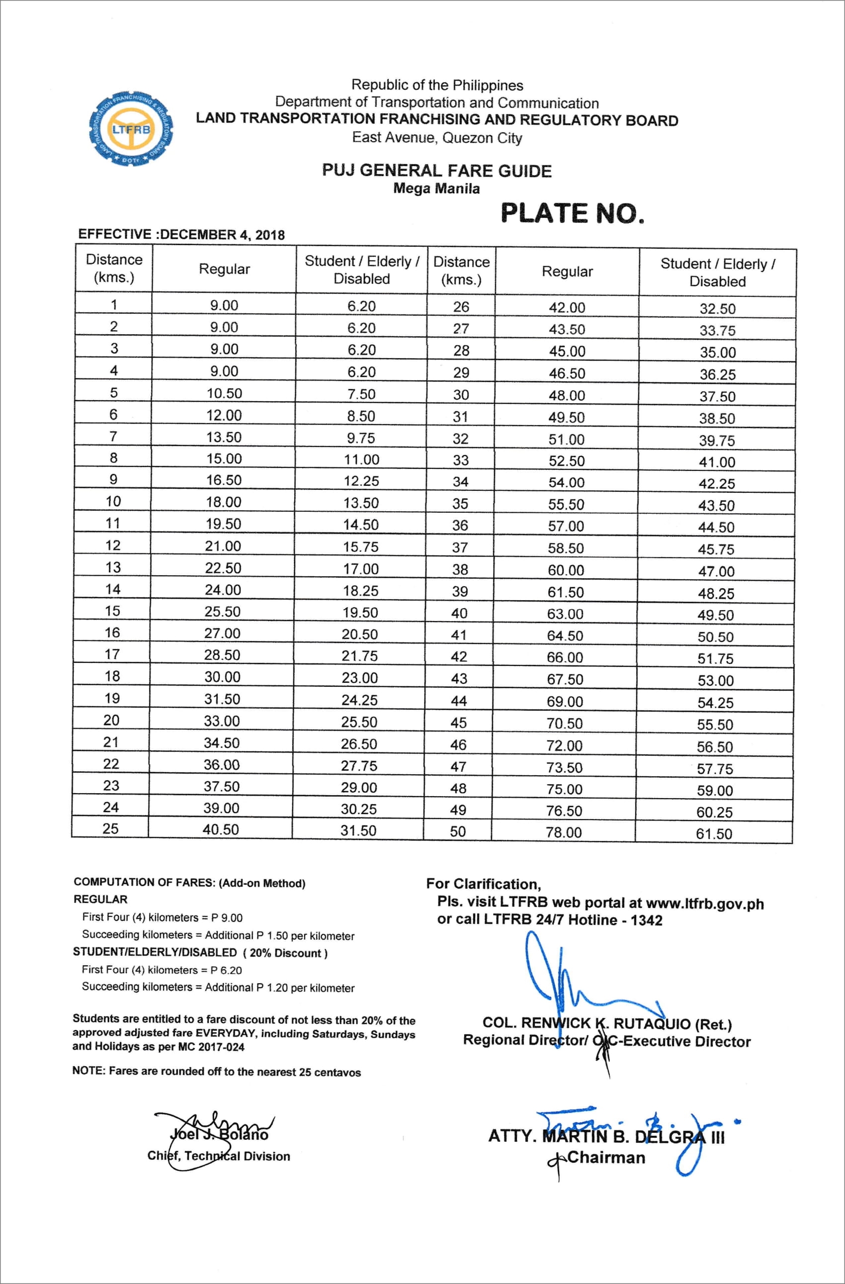 · LTFRB(Land Transportation Franchising and Regulatory Board) : Fare Rates
