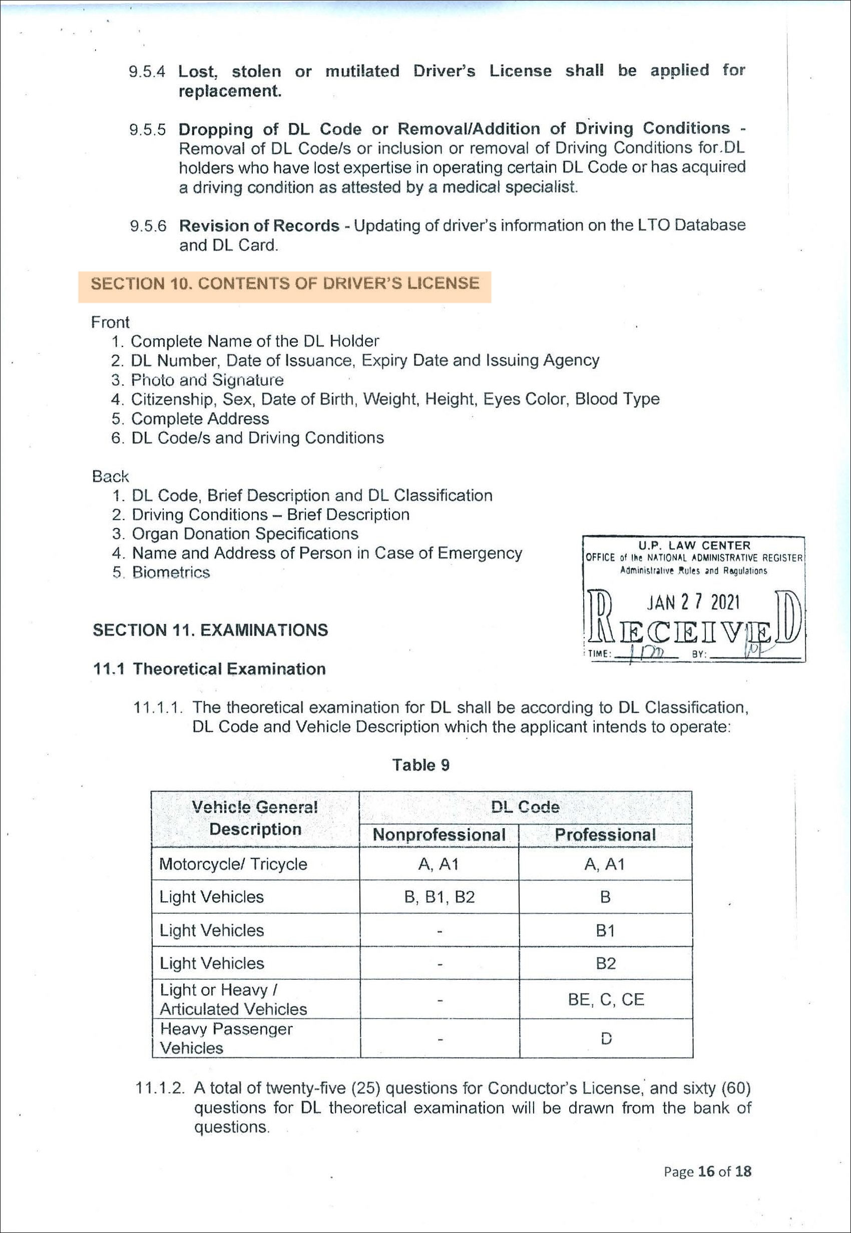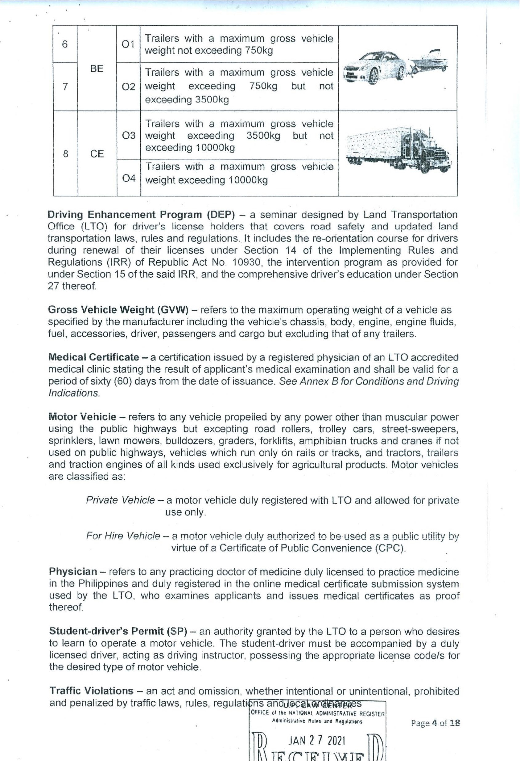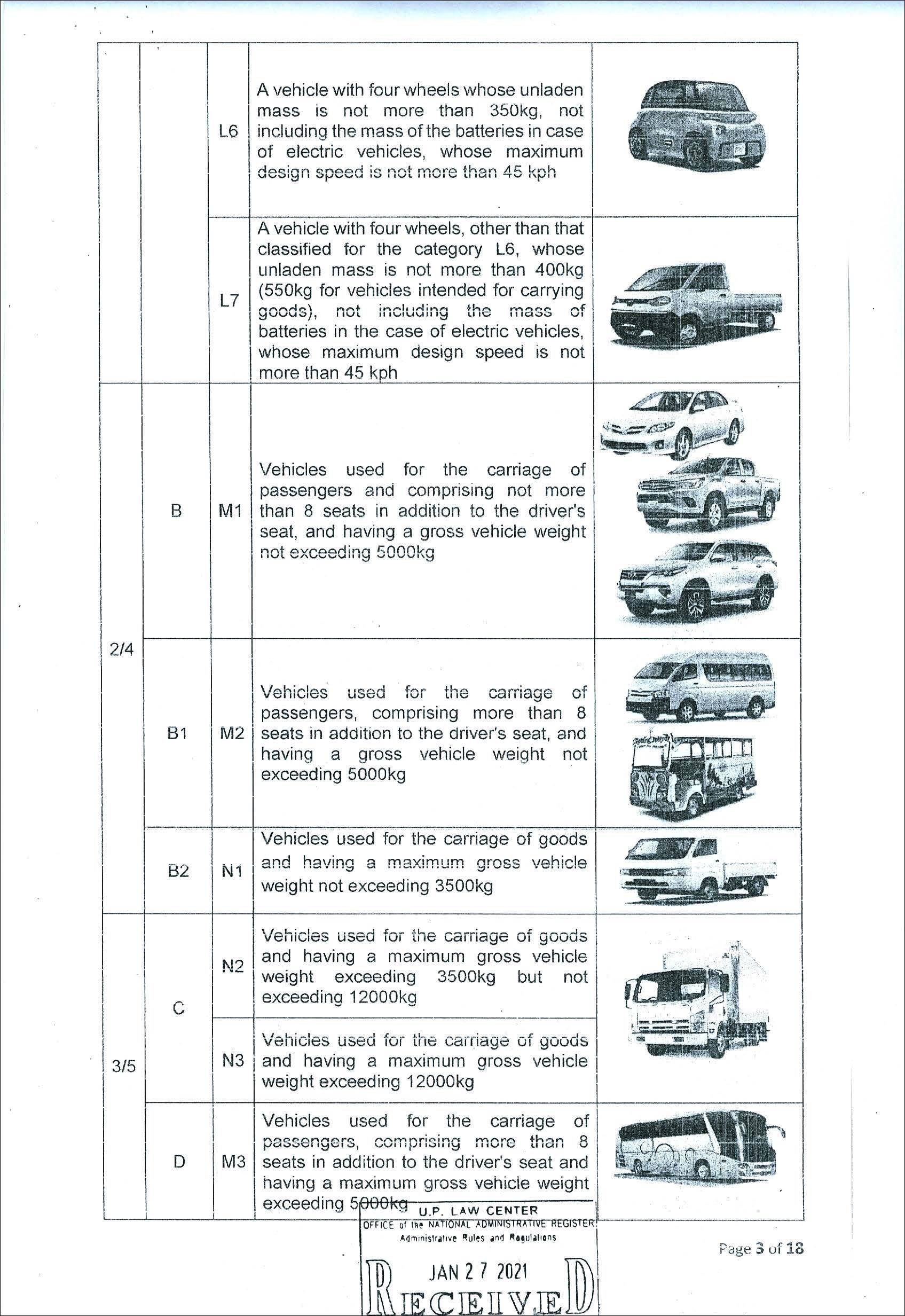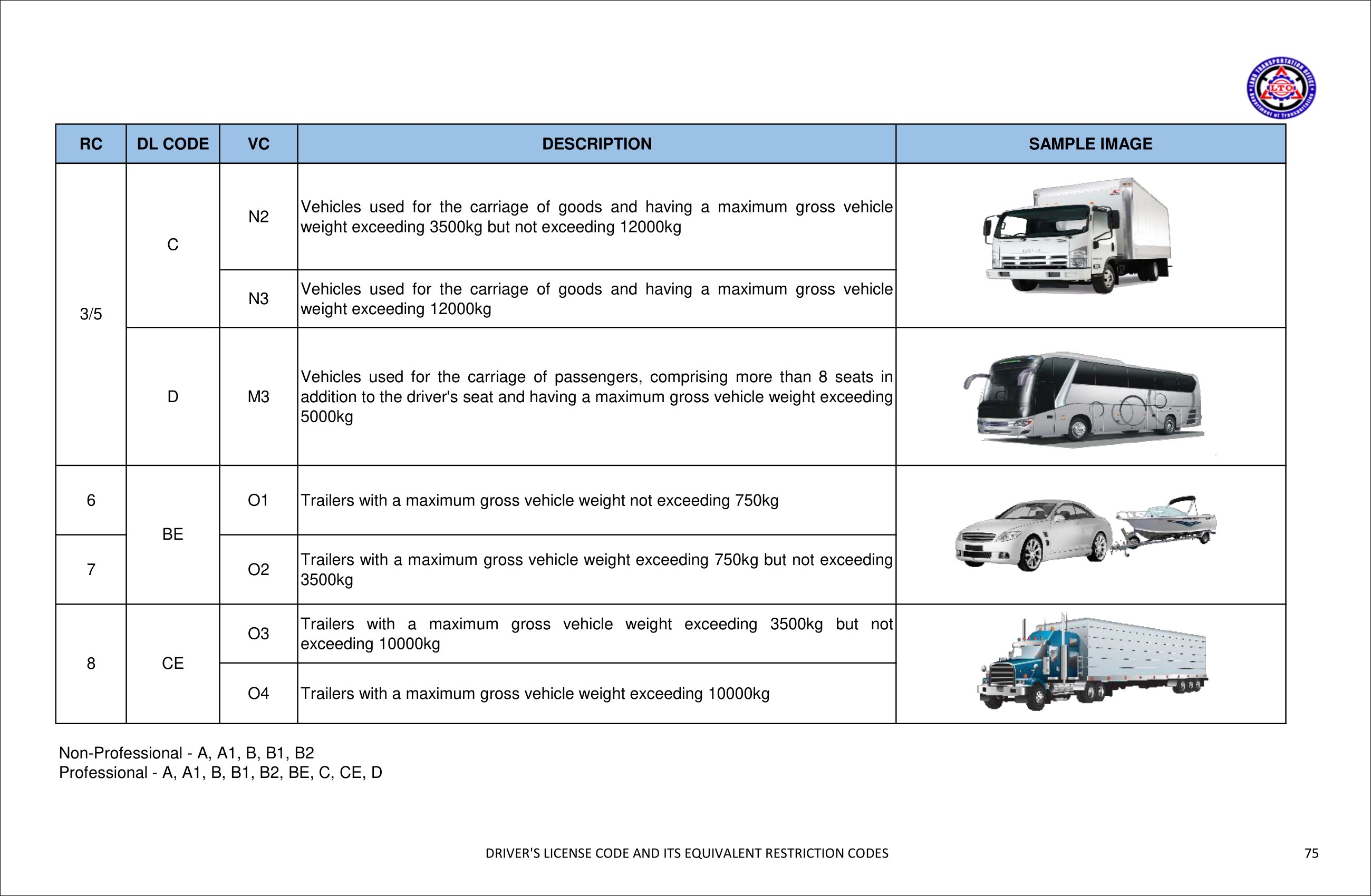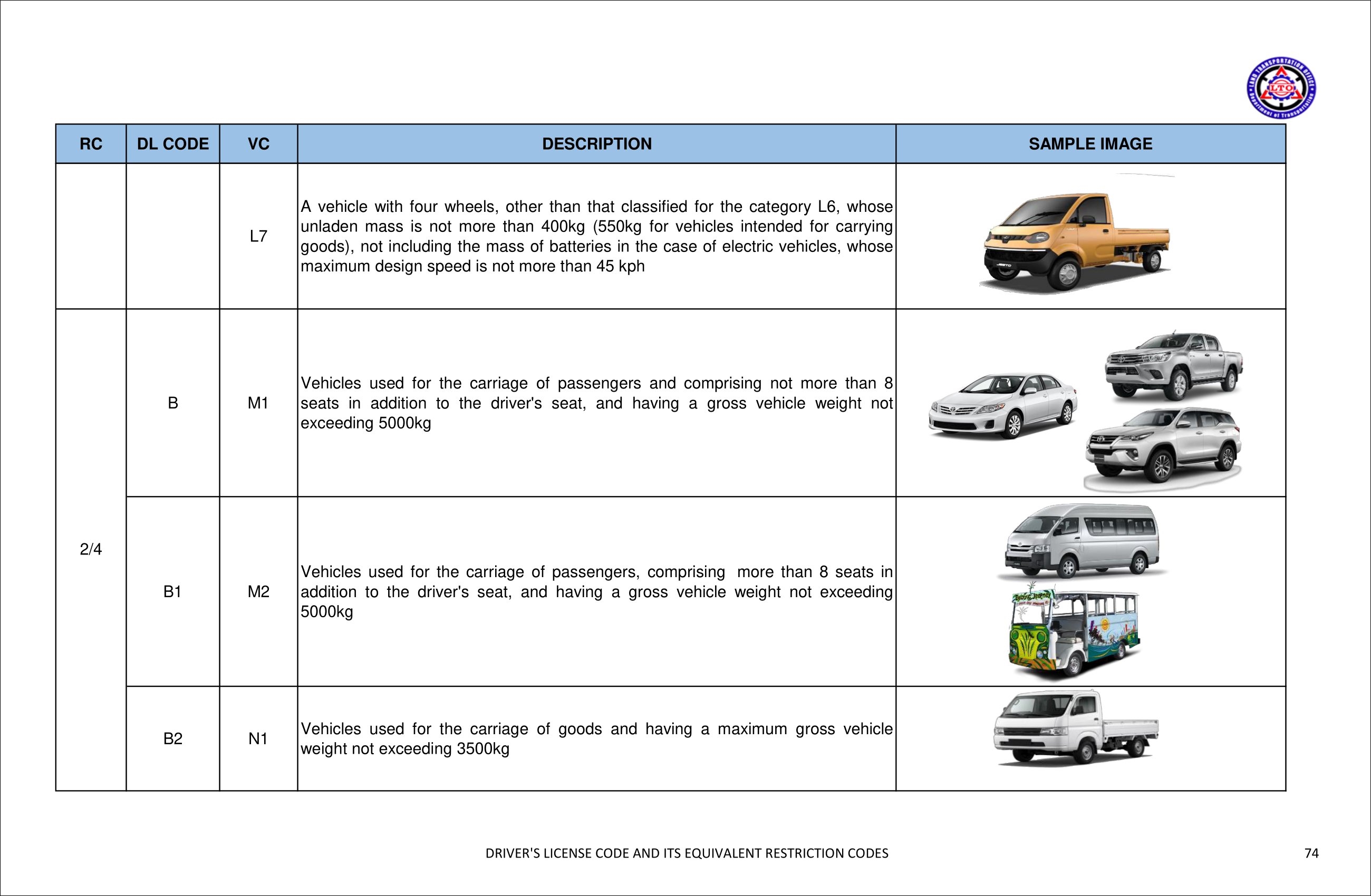 지난 2021년 필리핀 LTO에서는 운전 가능 차량을 안내하기 위해 DL CODE라는 것을 발표했다. 기존에 사용하던 분류 코드(Restriction Code)가 사람들에게 혼동을 줄 수 있다는 이유였다. Code 1부터 Code 8으로 나뉘던 RC(Restriction Code)와 다르게 새로 발표된 DL CODE는 차량 카테고리를 세분화하여 기존보다 더 명확히 어떤 종류의 차량을 운전할 수 있는지 보여준다.