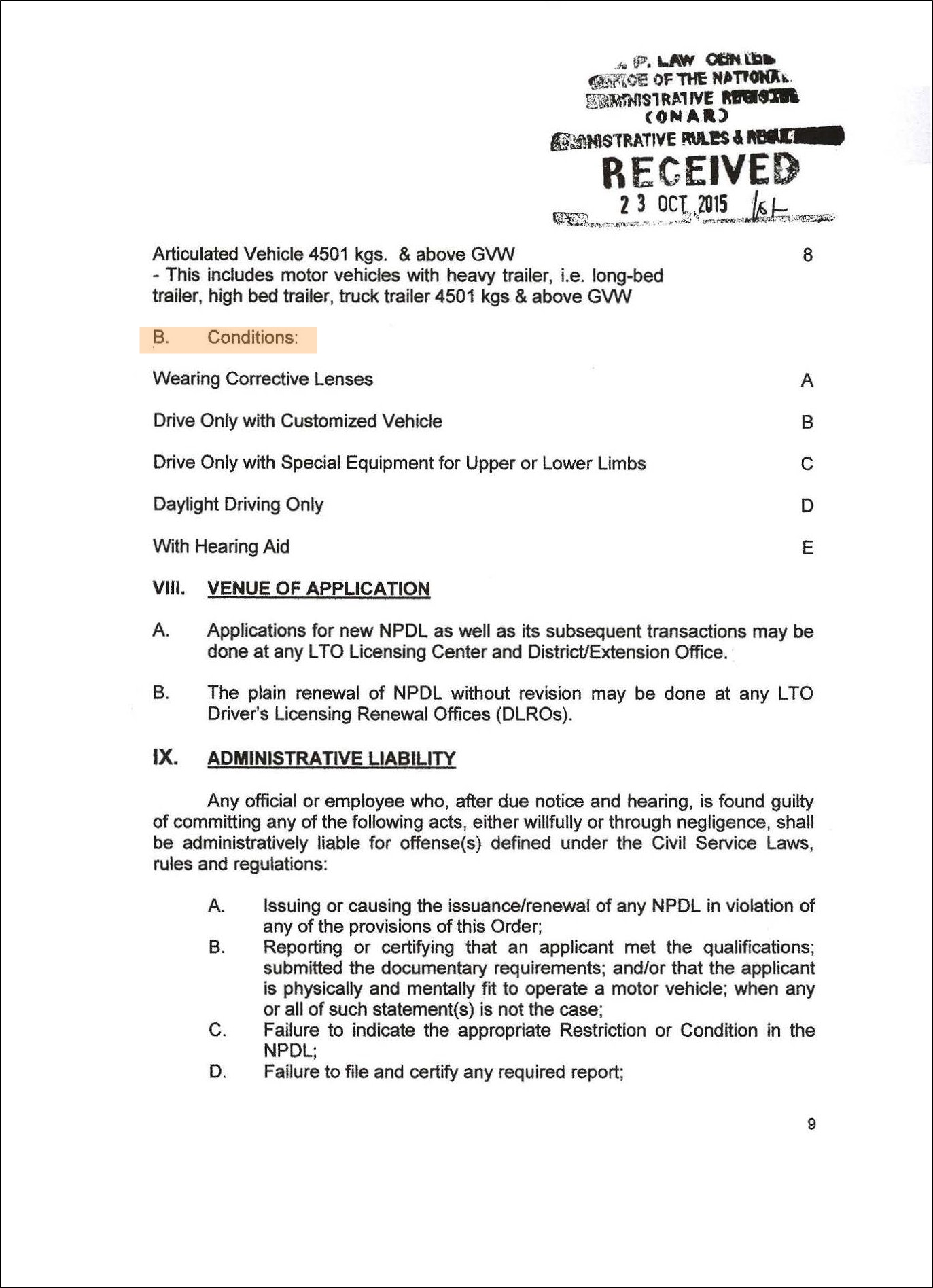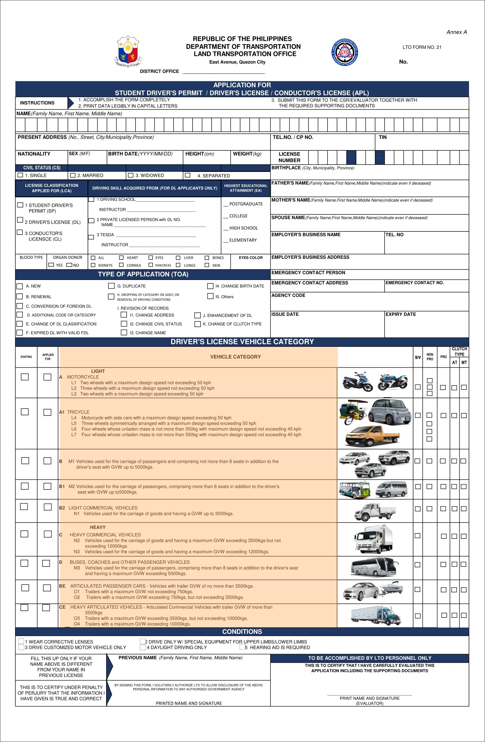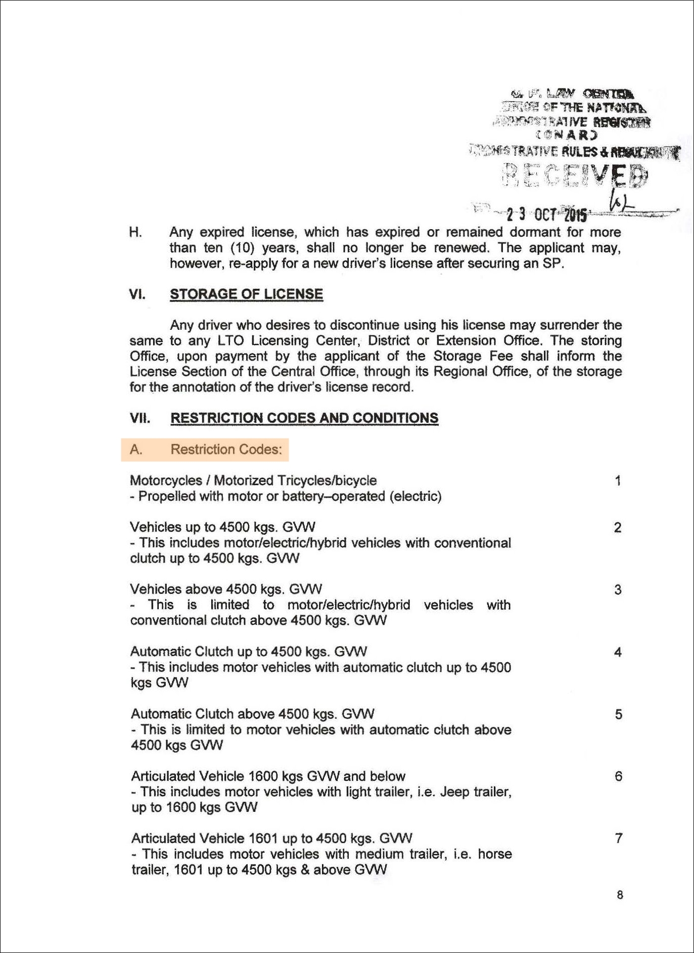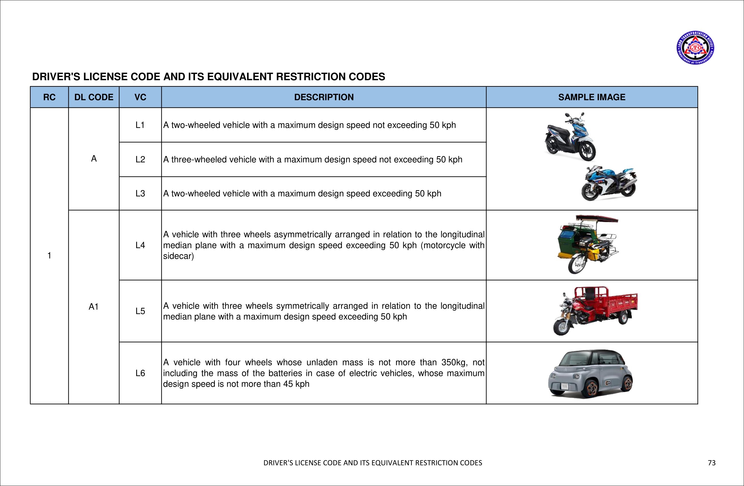 · 필리핀 교통국(LTO): List of LTO Driver’s License Restriction Codes and Meanings