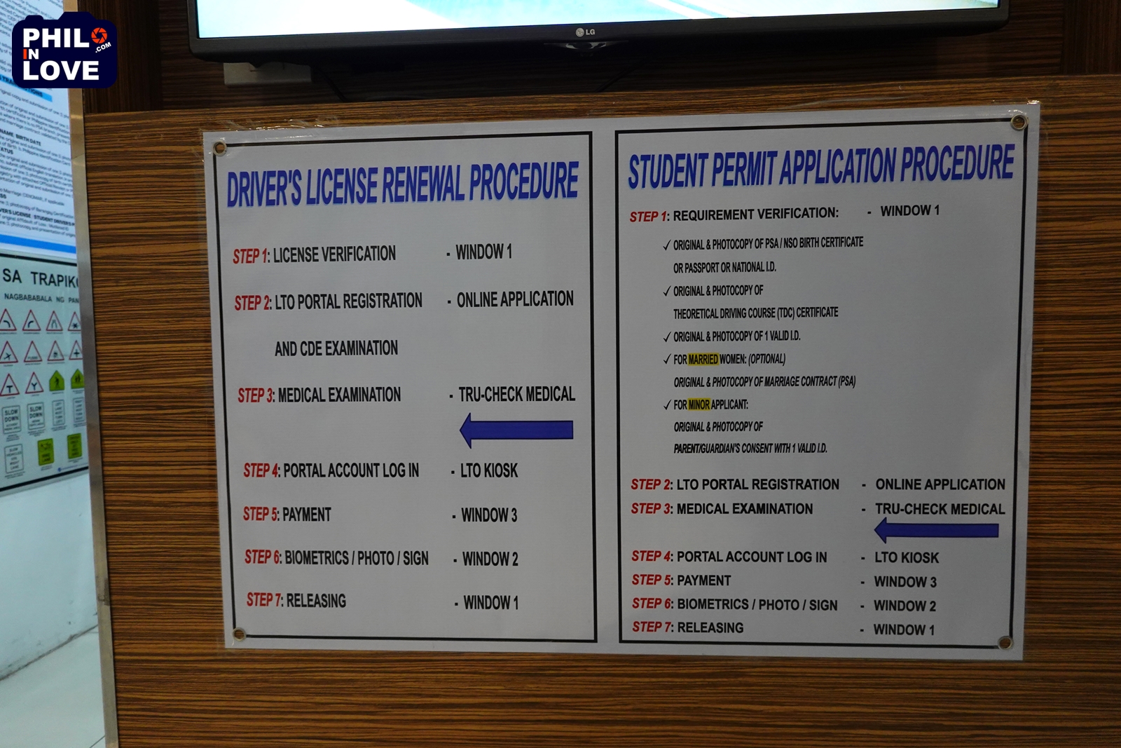LTO 사무실이나 LTO DLRO에 방문하여 서류제출 후 수수료 납부를 납부하면, 새로 발급된 운전면허증과 영수증(Official Receipt) 수령할 수 있게 된다. 사진 촬영, 지문 채취, 운전면허증 카드의 서명 변경 등은 필요한 경우만 진행하면 되며, 기존 것을 그대로 사용할 수 있다. 특별한 사유가 없다면 당일 바로 운전면허증을 발급받을 수 있다.